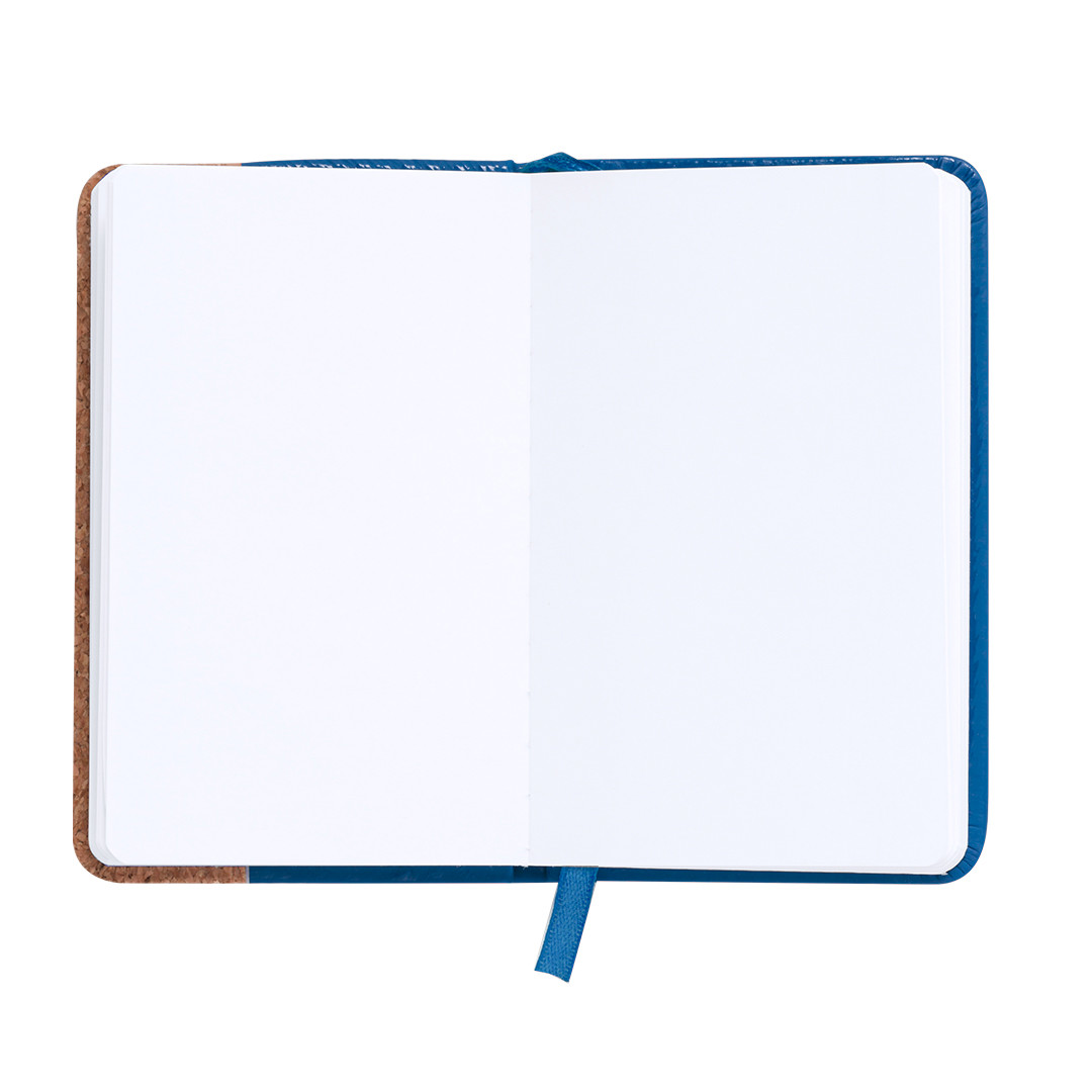 Bloc-notes avec couvertures rigides en liège souple. Il comprend 80 feuilles lisses avec élastique de fixation et marque-page en tissu assorti. Disponible dans une large gamme de couleurs, avec un toucher extérieur en combinaison de liège naturel et éco-cuir. Présenté dans un sac individuel. Élaboré à partir d’éléments végétaux pour encourager l’utilisation de matières premières naturelles et réduire les émissions polluantes. Couverture Rigide. 80 Feuilles