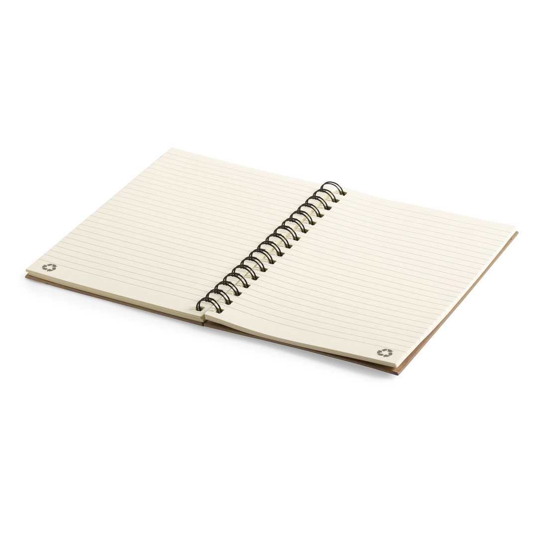 Carnet A5 coloré. Couverture rigide en carton recyclé et élastique de couleur naturelle. Avec 80 feuilles en format rayé et éco-concu. Couverture Rigide. 80 Feuilles