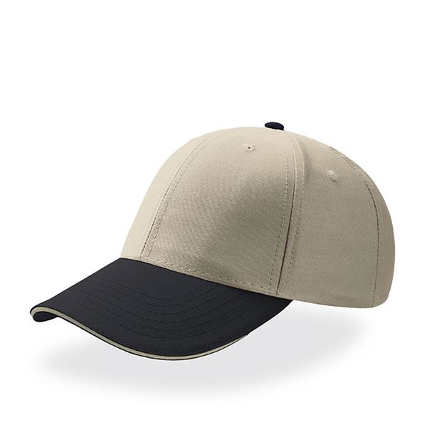 Casquette de baseball à 6 panneaux en sergé 100% coton avec visière sandwich pré-courbée.