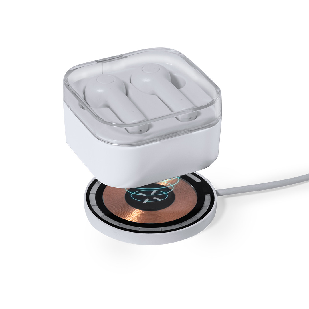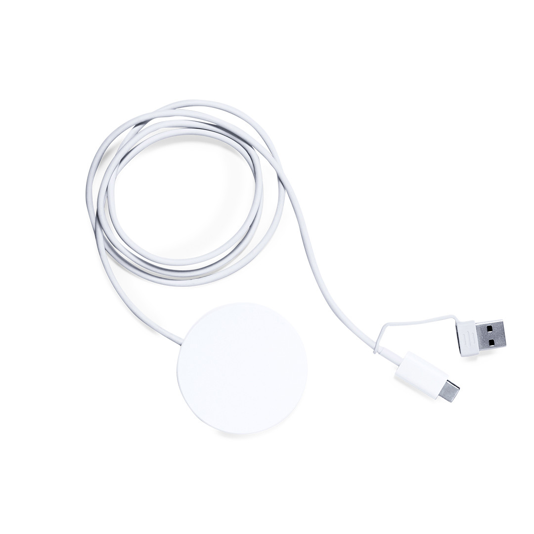 CAROLINE. Chargeur sans fil 15W superfast avec HUB 2 ports USB-A en ABS recyclé (60 % rABS) - Blanc