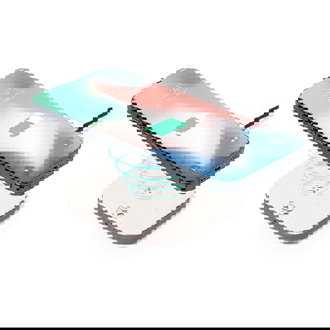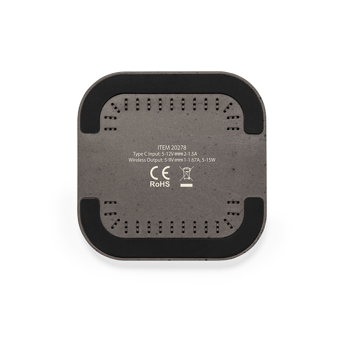 Chargeur sans fil en fibre de café et coton recyclé. Base antidérapante et compatible avec les appareils équipés de la technologie de charge Qi. Capacité de charge de 15 W, avec câble noir Type-C inclus. Avec fibre de café distinctive et coton recyclé. Présenté dans une jolie boîte au design kraft, avec un manuel d'instructions en espagnol et en anglais.La fibre de café est une solution circulaire obtenue à partir de l'utilisation des déchets produits lors de l'obtention du café. Une alternative durable qui favorise la réduction de l'utilisation des plastiques, économise de l'énergie dans son processus de fabrication et contribue à la protection de l'environnement.Certification GRS disponible (Global Recycled Standard / Global Recycling Standard), qui garantit l'origine recyclée du matériau utilisé pour fabriquer le produit. Sans Fil 15W