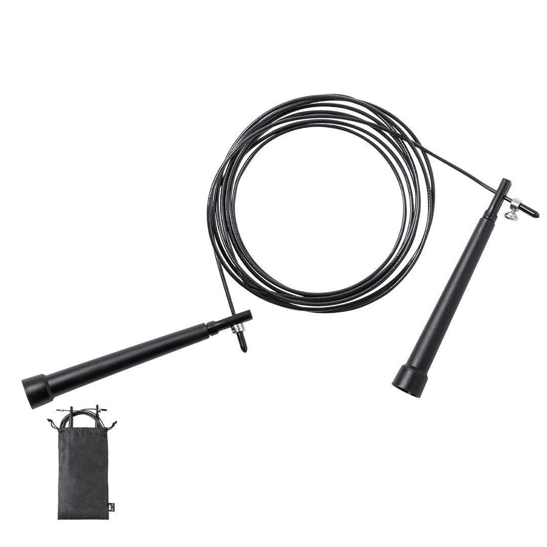 Corde de qualité supérieure, avec corde réglable extra longue de 3 m de long et en acier avec couverture en PVC résistant. Avec des poignées de fixation ergonomiques et présenté en couverture en polyester RPET avec fermeture de cordon, fabriqué à partir de plastique recyclé pour favoriser la réutilisation des déchets plastiques et contribuer à la durabilité de la planète. Étiquette RPET distinctive sur le boîtier. Réglable. Étui Polyester RPET