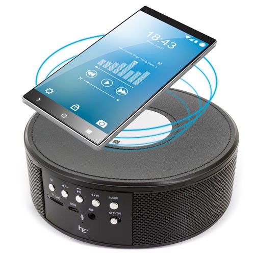SOMMEIL Haut-parleur Bluetooth de haute qualité avec une puissance de 6 W, écoutez votre musique préférée, la radio ou chargez votre mobile avec la technologie sans fil. Connexion NFC, déplacez simplement votre smartphone compatible NFC près du haut-parleur et laissez le rythme battre. Il dispose également d'un réveil lumineux et d'un lecteur de carte Micro SD. Comprend un cordon d'alimentation et une boîte d'affichage.