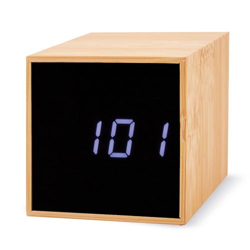 Design esthétique en bambou avec fonctions : heure, calendrier, alarme et température, qui s'affiche alternativement sur un écran noir spectaculaire.Petite taille, élégante et respectueuse de la nature.Chaque pièce dans une boîte individuelle, comprend un câble de chargementPeut également être utilisé avec des piles (3AAA non incluses)