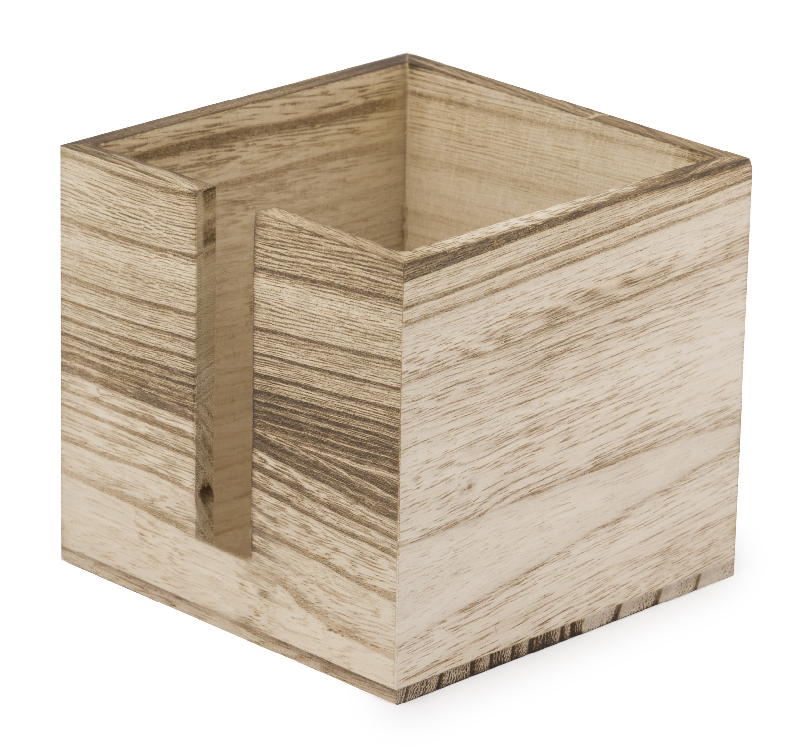 Serviette pratique en bois. Design industriel, fabriqué en bois doux naturel avec rainure sur un côté pour pouvoir attraper les serviettes facilement. Convient aux serviettes de 10,5x10,5 cm (non incluses). Présenté dans une boîte de conception kraft.