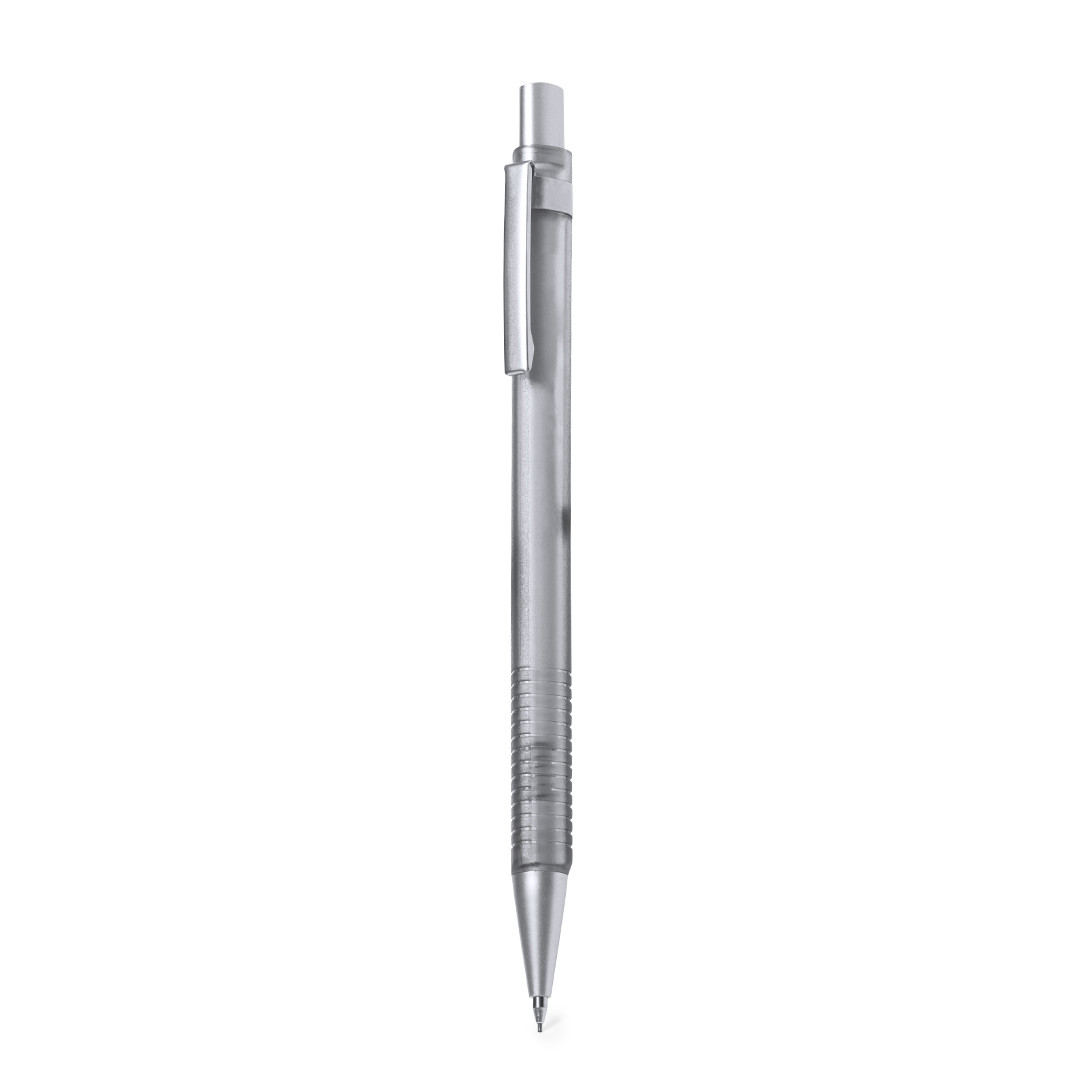Porte-mines élégant en ABS robuste. Corps en gris translucide et poignée assortie au toucher rugueux pour une meilleure adhérence, avec des éléments chromés tels que bouton, clip et pointe. Avec caoutchouc et mines incluses de 0,7 mm. Mines 0,7 mm Incluses