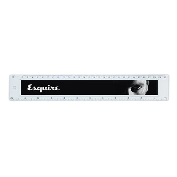 Règle en plastique personnalisable de 30 cm avec photo, logo ou texte. Vous pouvez personnaliser la règle à votre guise. Il suffit de créer un motif, de le découper à la bonne taille, d´insérer le papier dans la règle et de refermer le tout avec le support transparent. Personnalisable sur 1 face avec insertion de papier (270x30mm)