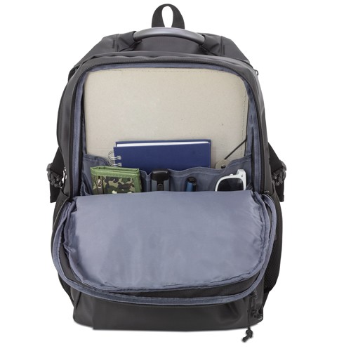 Grand sac à dos, idéal pour ceux qui ont besoin d'espace et d'organisation dans leur vie quotidienne. Il dispose de plusieurs compartiments avec fermetures latérales pour plus de sécurité. Renfort lombaire et bretelles rembourrées. Intérieur rembourré pour ordinateur portable jusqu'à 17".Attache élastique pour transport sur trolley