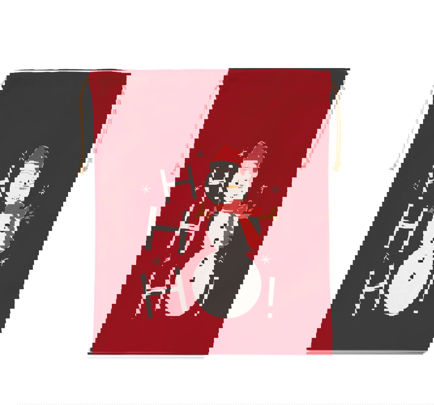 Saco de algodão com cordão, motivo boneco de neve - Vermelho