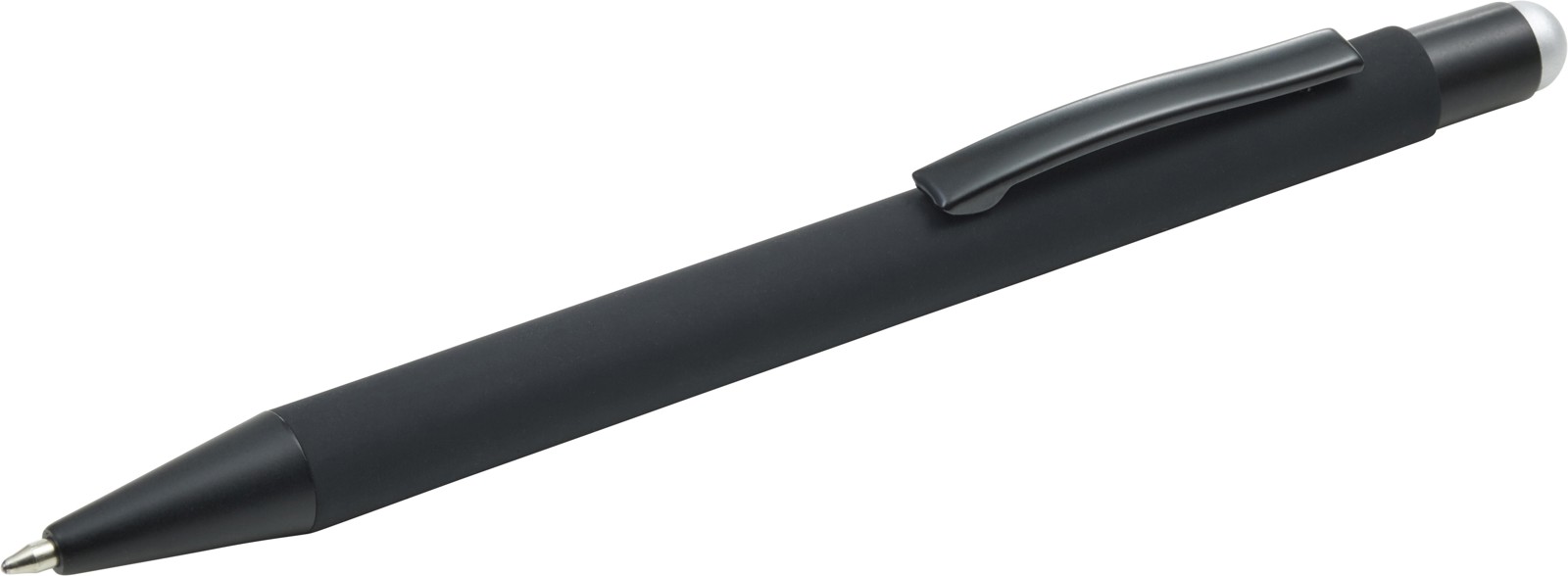 Stylo bille en métal toucher gomme avec embout pour écran tactile, mine bleue. Gravé, le rendu de la couleur correspond à la couleur de l'embout.