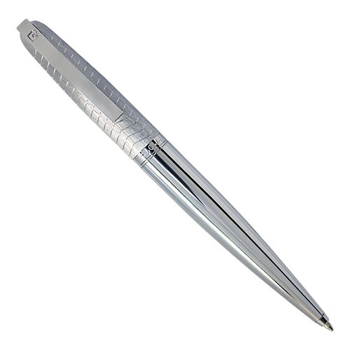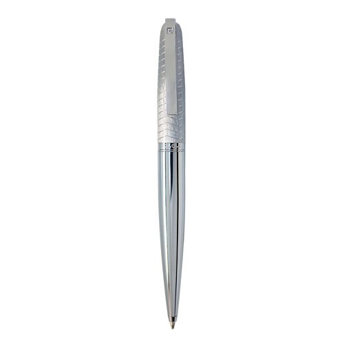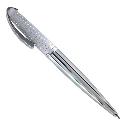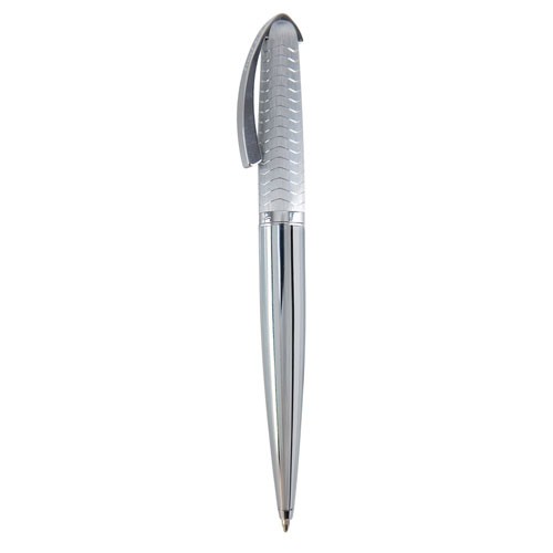 Stylo à bille métallique avec fermeture à mécanisme rotatif en métal mat texturé avec décorations vagues.Complété avec un clip incurvé original.Présenté dans un étui.