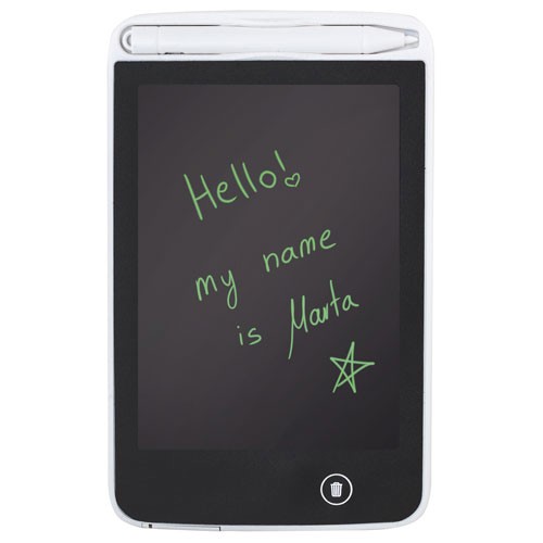 Dessinez et écrivez de manière écologique sans avoir besoin d’encre et sans gaspiller de papier. Il est sensible à la pression, capable de tracer des lignes de différentes épaisseurs et dispose d'un bouton d'effacement et d'un bouton de blocage au cas où vous voudriez éviter d'effacer ce que vous avez dessiné. Comprend un aimant de 25 X 25 MM avec autocollant à placer sur le dos du tableau.