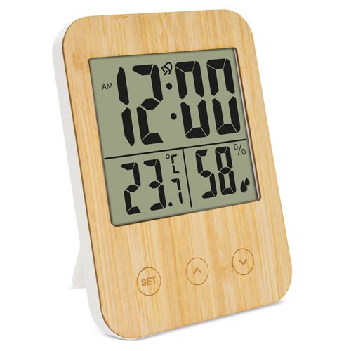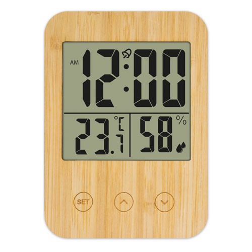 Température Max/MinHumidité Max/MinTempératureAlarmeHeureAvec support de table et pour accrocher au mur.2 piles AAA (Non fournies)