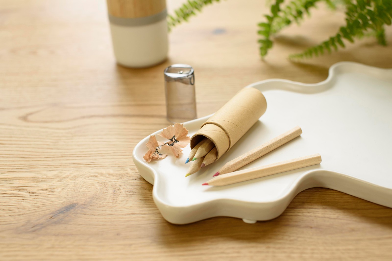 Tube cartonné de 6 crayons de couleur avec taille-crayon.