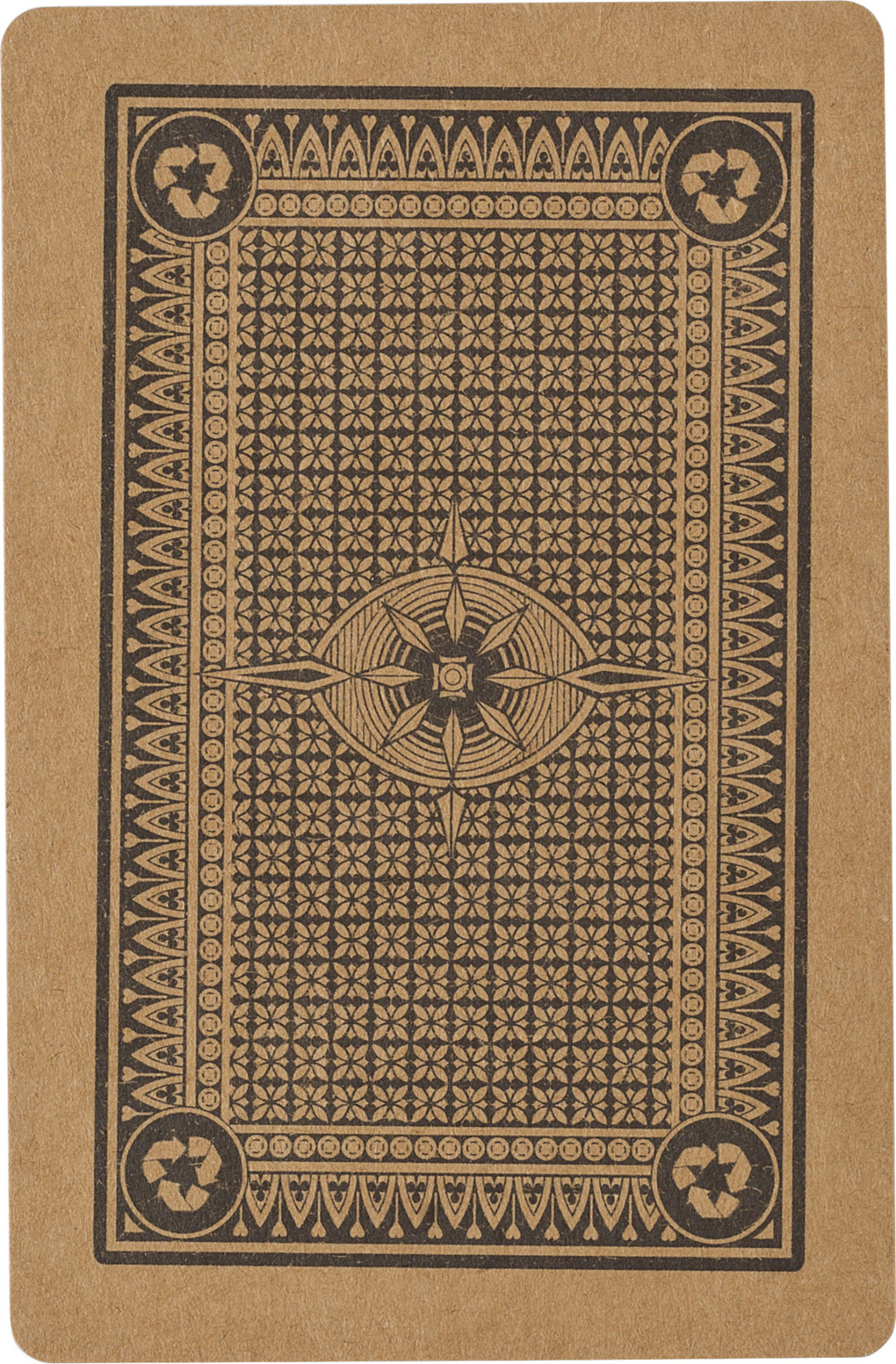 Baralho de papel reciclado em caixa de cartão reciclado. 54 Cartões (4x13 e 2 jokers).