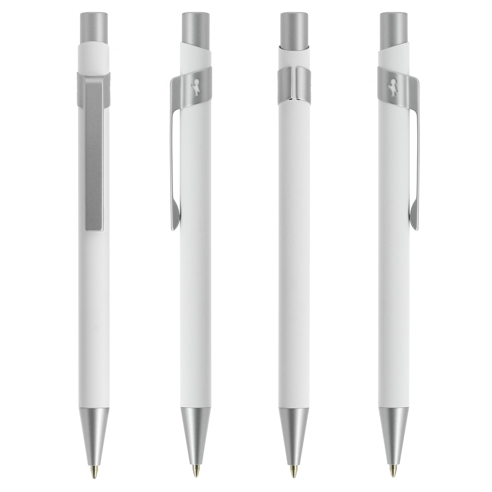 Detalhes em metal, design moderno com uma grande variedade de cores e acabamentos. Máximo conforto de escrita, grande refil de metal alemão.
