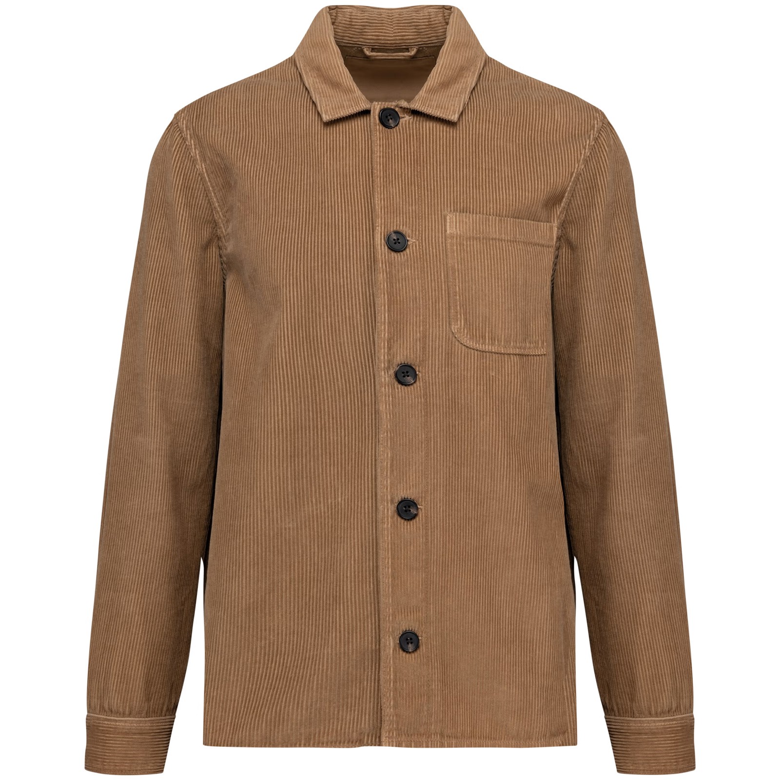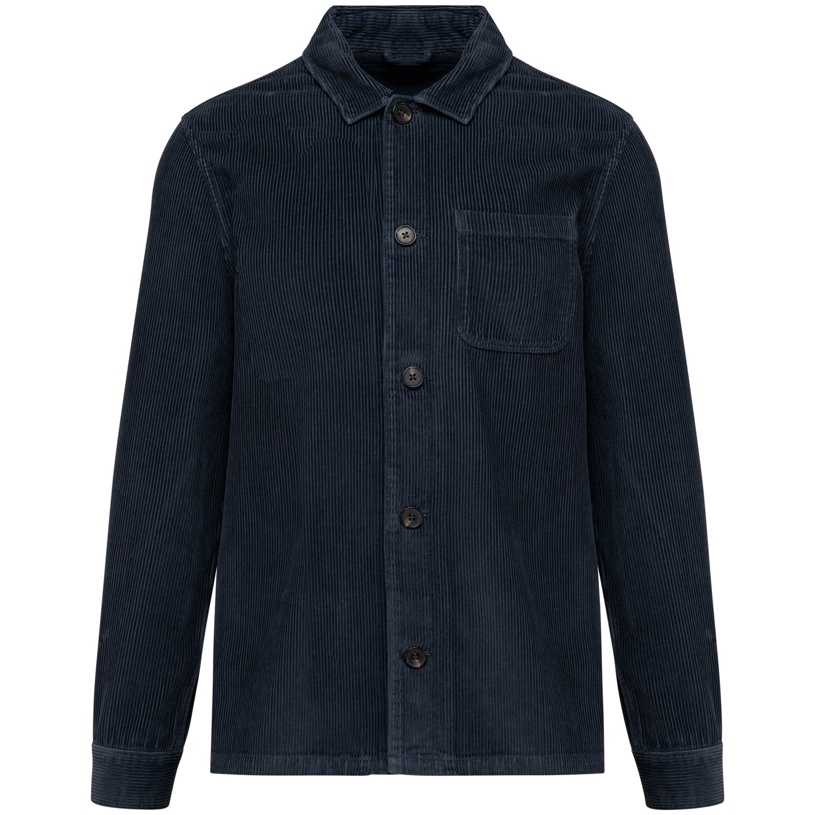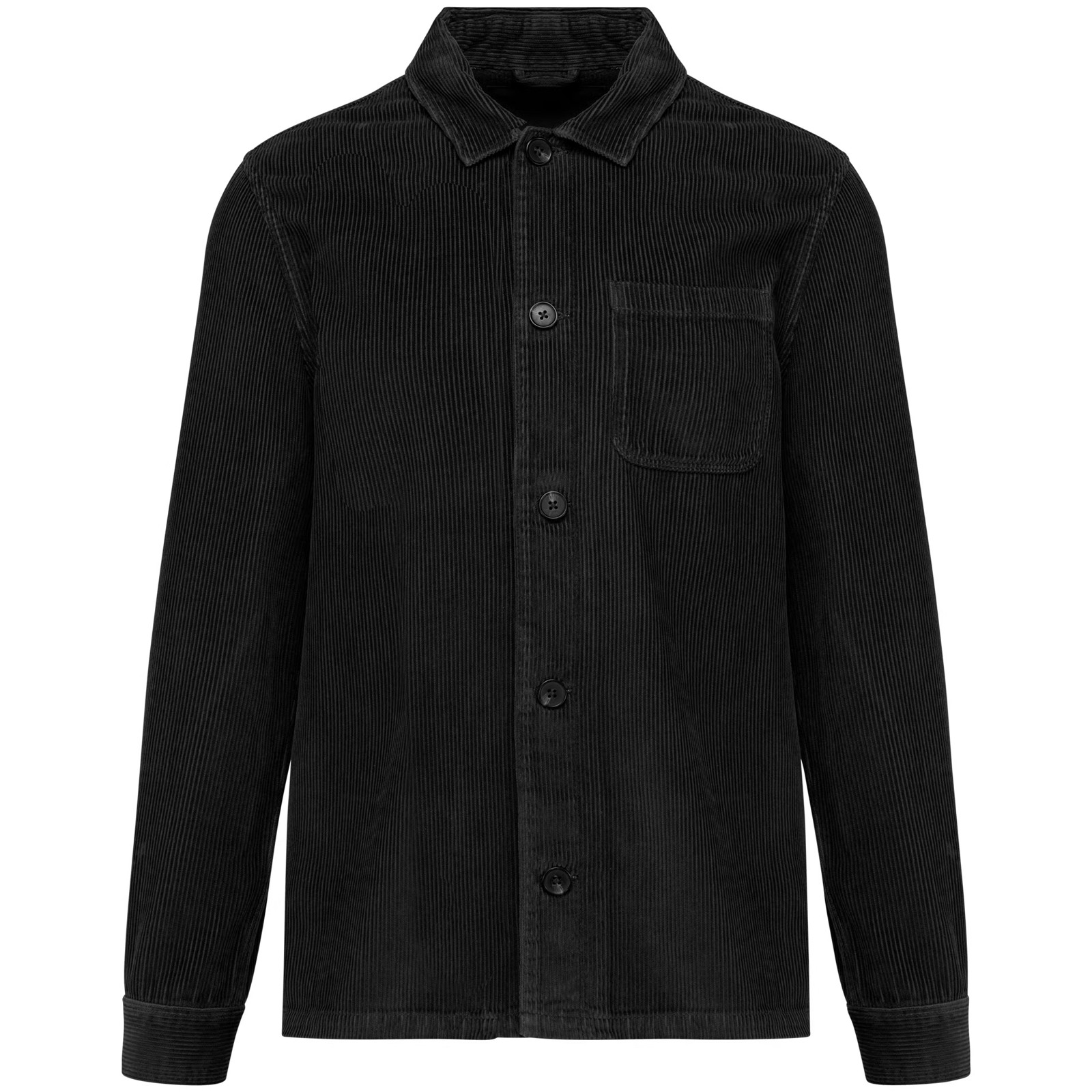 100% algodão biológico. Corte direito. Blusão em veludo, canelado 1 x 1 com bolso plano no peito esquerdo. Carcela com botões em plástico reciclado. Punhos com abertura e botão em plástico reciclado. Gola com motivo fantasia. Presilha interior para pendurar no tecido principal. Encaixe nas costas. Patch de personalização interior. Peça tingida após montagem: as cores podem variar de produto para produto. Esta peça é susceptível de debotar em contacto com superfícies ou peças de vestuário claras.
