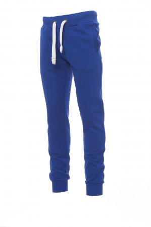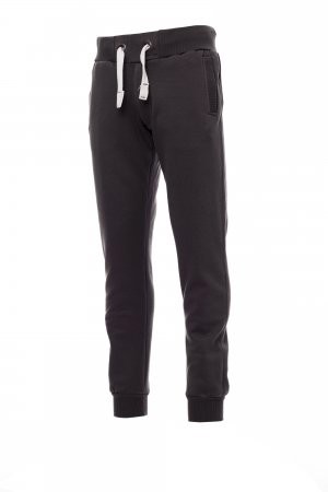 Calça de Fato de Treino masculina com elástico canelado na cintura e na parte inferior das pernas, fecho de correr, cordão branco com costuras contrastantes e argolas de metal, dois bolsos frontais com canelado e um bolso traseiro, com fecho de correr e costuras reforçadas.