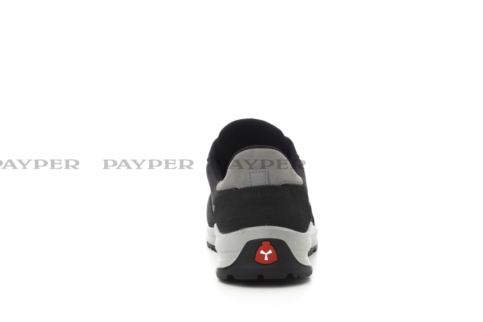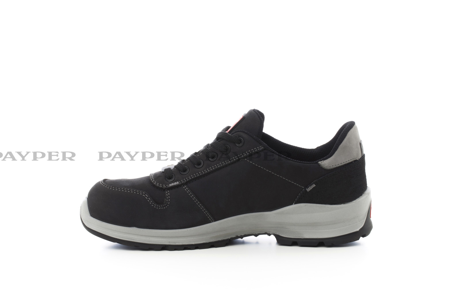Calçado de proteção antiestático cano baixo para homem, gáspea em pele repelente à agua e respirável, forro interno (para toda a superfície interna) respirável e resistente à abrasão, 6+6 ilhoses metal-free, proteção do calcanhar em grão pampas com aplicação refletora, biqueira alumínio fundido sob pressão, palmilha removível Ortholite X40 016, palmilha removível, alma anti-entorse, reforço biqueira interna em policarbonato em forma de ferradura, sola intermédia em poliuretano ultraleve, amortecimento MASTER BALANCE poliéster PU de alta tenacidade e densidade equilibrada, sola XTRAIL GRIP em TPU com protetor de calcanhar e protetor de ponta.