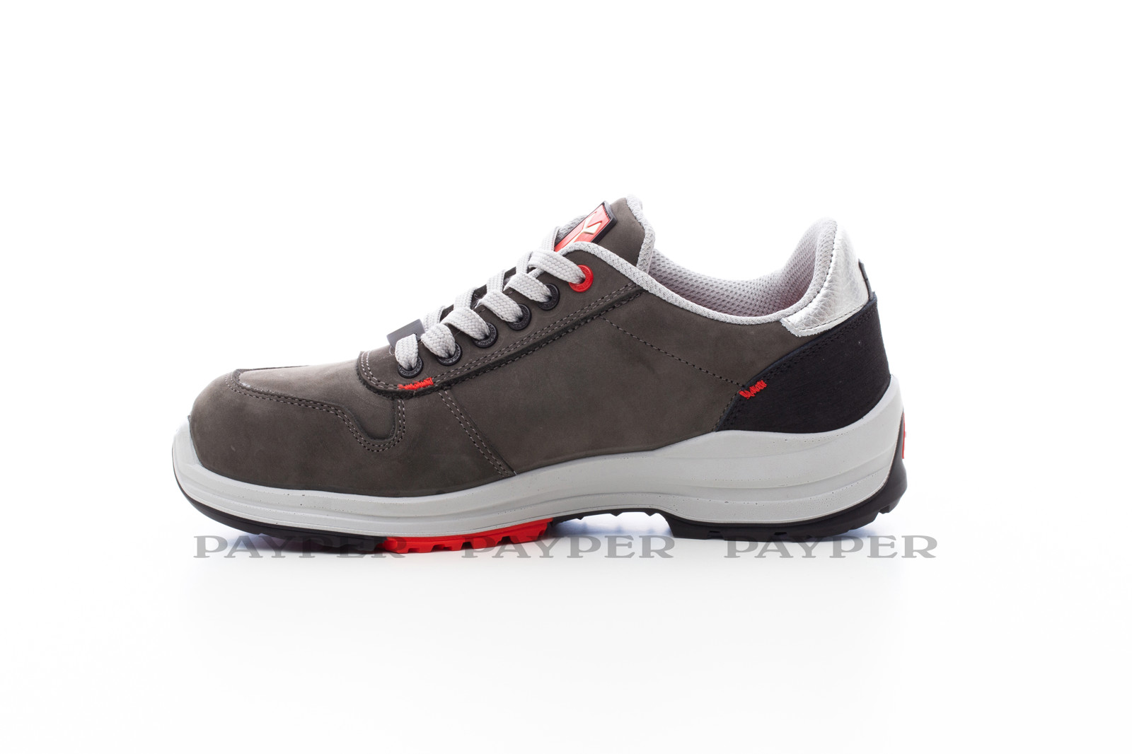 GET FORCE LOW LD S3-NBK. Calçado de proteção antiestático cano baixo para senhora, gáspea em pele repelente à agua e respirável, forro interno (para toda a superfície interna) respirável e resistente à abrasão, 6+6 ilhoses metal-free, proteção do calcanhar em grão pampas com aplicação refletora, biqueira alumínio fundido sob pressão, palmilha removível Ortholite X40 016, palmilha removível, alma anti-entorse, reforço biqueira interna em policarbonato em forma de ferradura, sola intermédia em poliuretano ultraleve, amortecimento MASTER BALANCE poliéster PU de alta tenacidade e densidade equilibrada, sola XTRAIL GRIP em TPU com protetor de calcanhar e protetor de ponta.