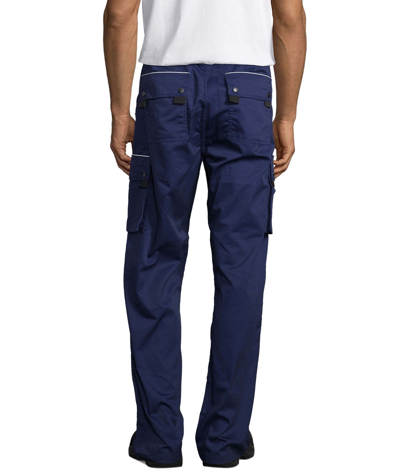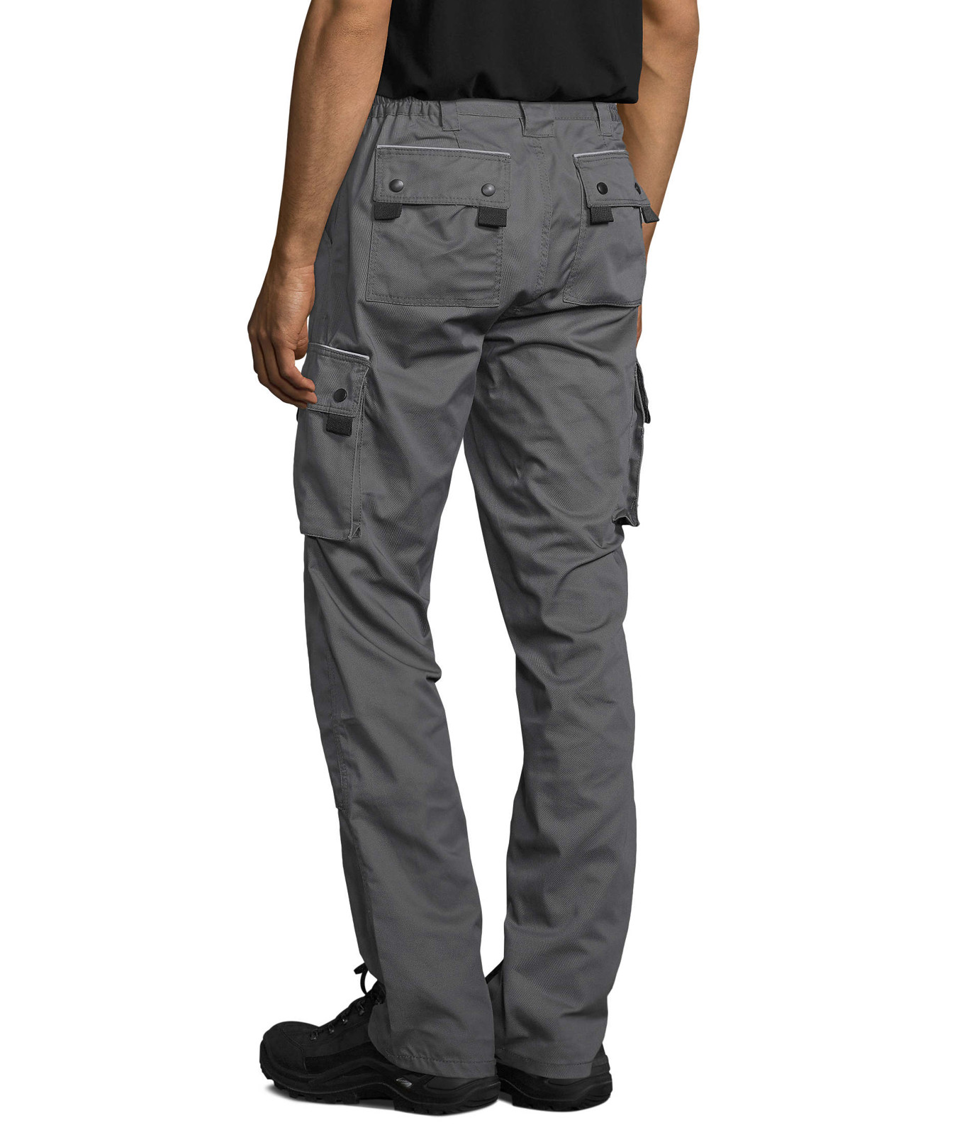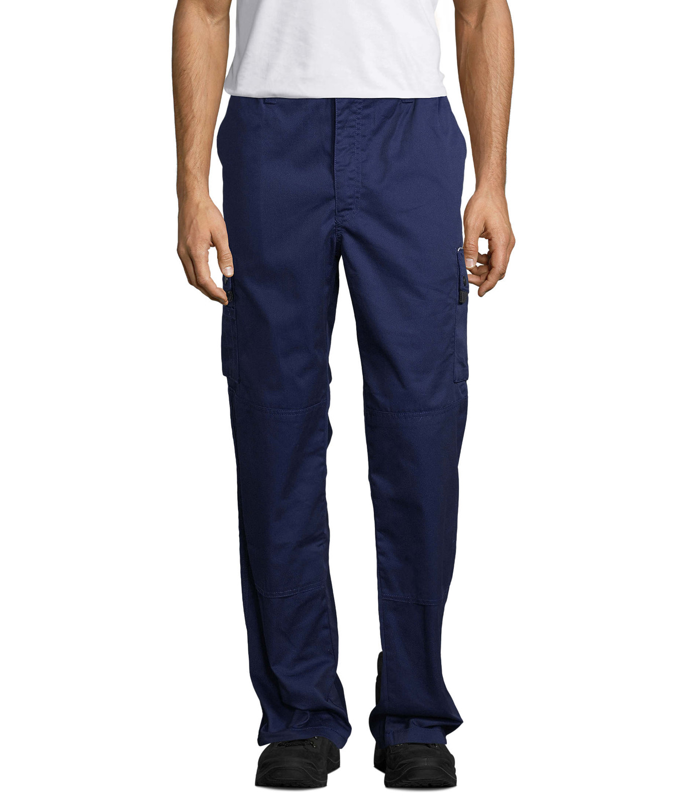 CALÇAS DE TRABALHO PARA HOMEM 9 bolsos Bolsos de pala com acabamentos reflectores 2 encaixes para caneta Fecho preto inserido Encaixes para joelheiras Etiqueta interior para identificação manual