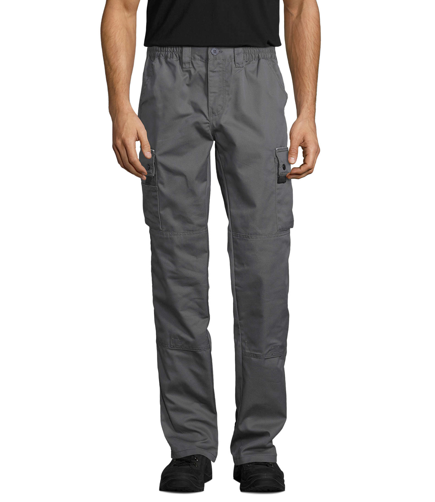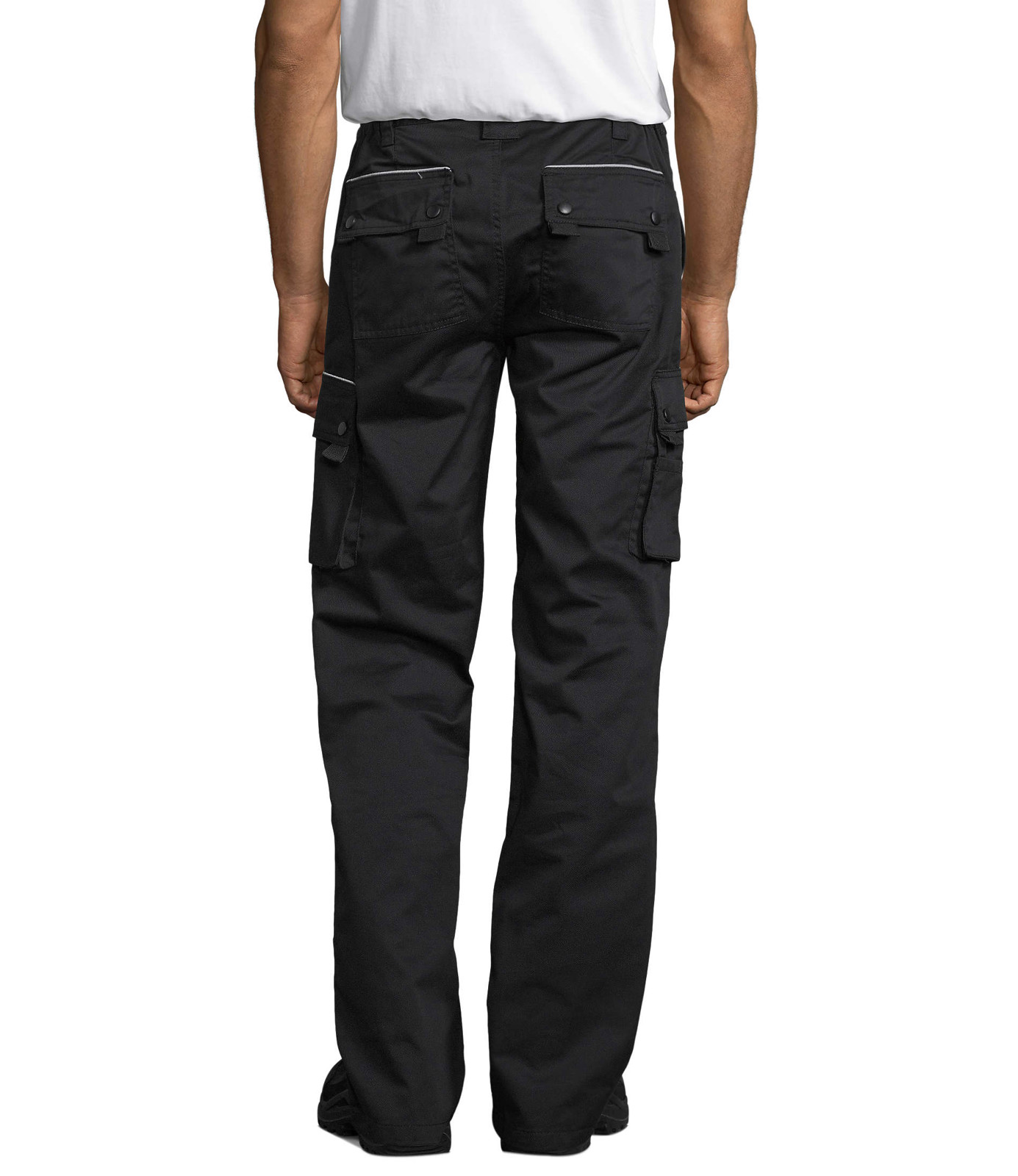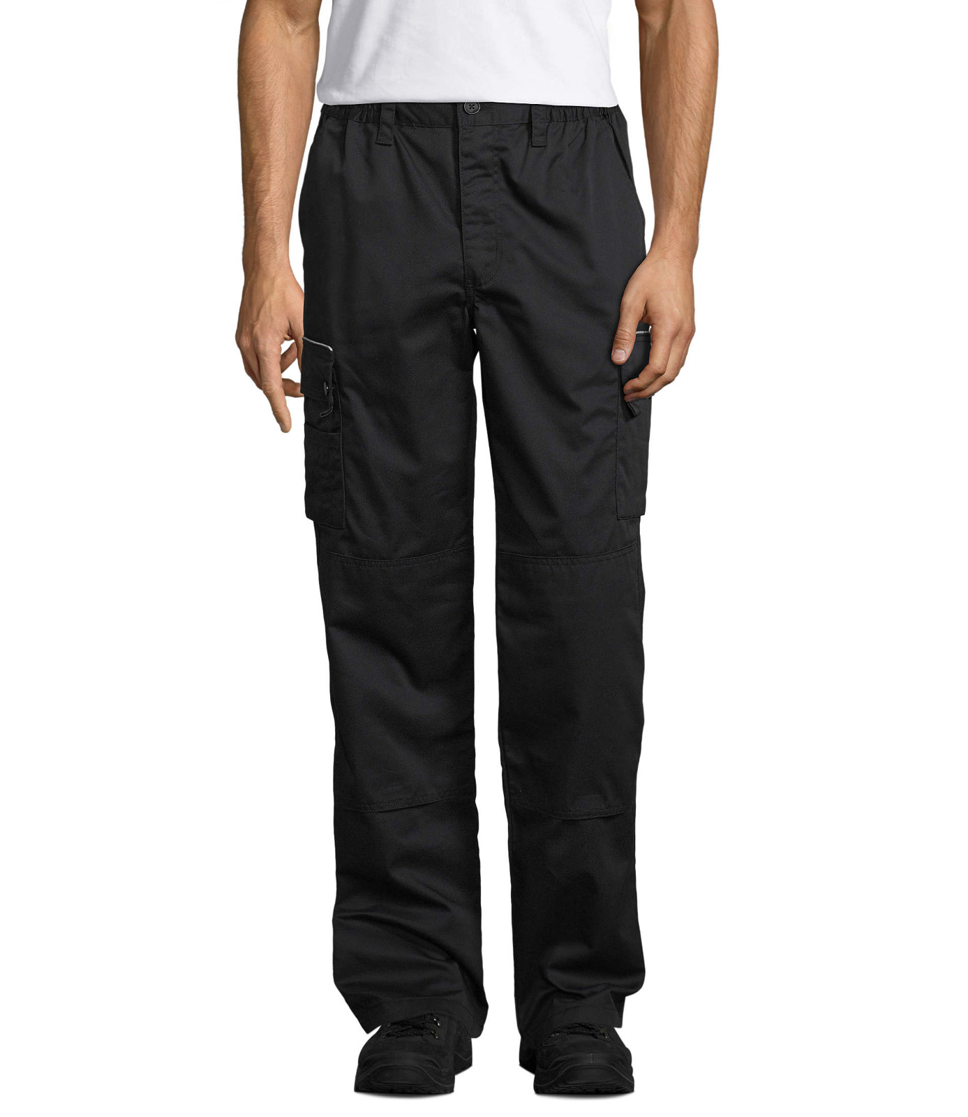 CALÇAS DE TRABALHO PARA HOMEM 9 bolsos Bolsos de pala com acabamentos reflectores 2 encaixes para caneta Fecho preto inserido Encaixes para joelheiras Etiqueta interior para identificação manual