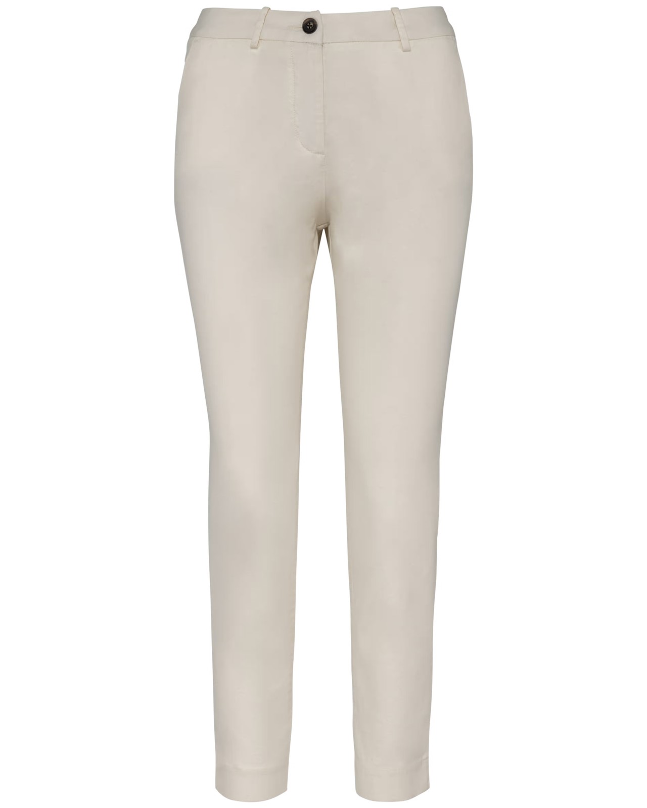 98% algodão biológico / 2% elastano. Algodão Twill. Corte direito. Com banho de enzimas. Acabamento pele de pêssego. Cintura com presilhas. Braguilha com botão reciclado e fecho em metal. Dois bolsos laterais. Dois bolsos traseiros com pesponto em fantasia. Interior dos bolsos em chevron tom sobre tom e pesponto interior em contraste na cor Natural. Costuras invisíveis e aberturas na parte de baixo da peça. Peça lavada após produção: as cores variam de produto para produto.