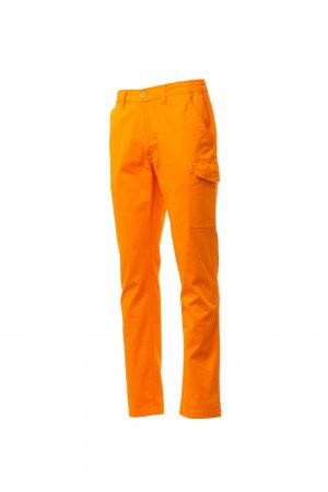 Calças com presilhas e elástico na cintura, fecho de correr e botão. Dois bolsos clássicos na frente, pequeno bolso para moedas, bolso para metro do lado direito, bolso do lado esquerdo com paleta de fecho LOCK SYSTEM, dois bolsos atrás, dos quais um com paleta e velcro. Costura tripla.