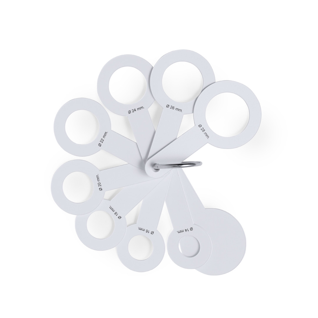 Calibrador manual fabricado em resistente PP. Para diâmetros desde 14mm a 28mm, perfeito para a medição e classificação em tempo real e de acordo com tamanhos. Inclui 8 moldes que vão aumentando gradualmente de 2 em 2 mm, um dos quais com uma superfície plana para impressão. Unidos por um prático anel de transporte. 8 Acessórios. 14-28 mm