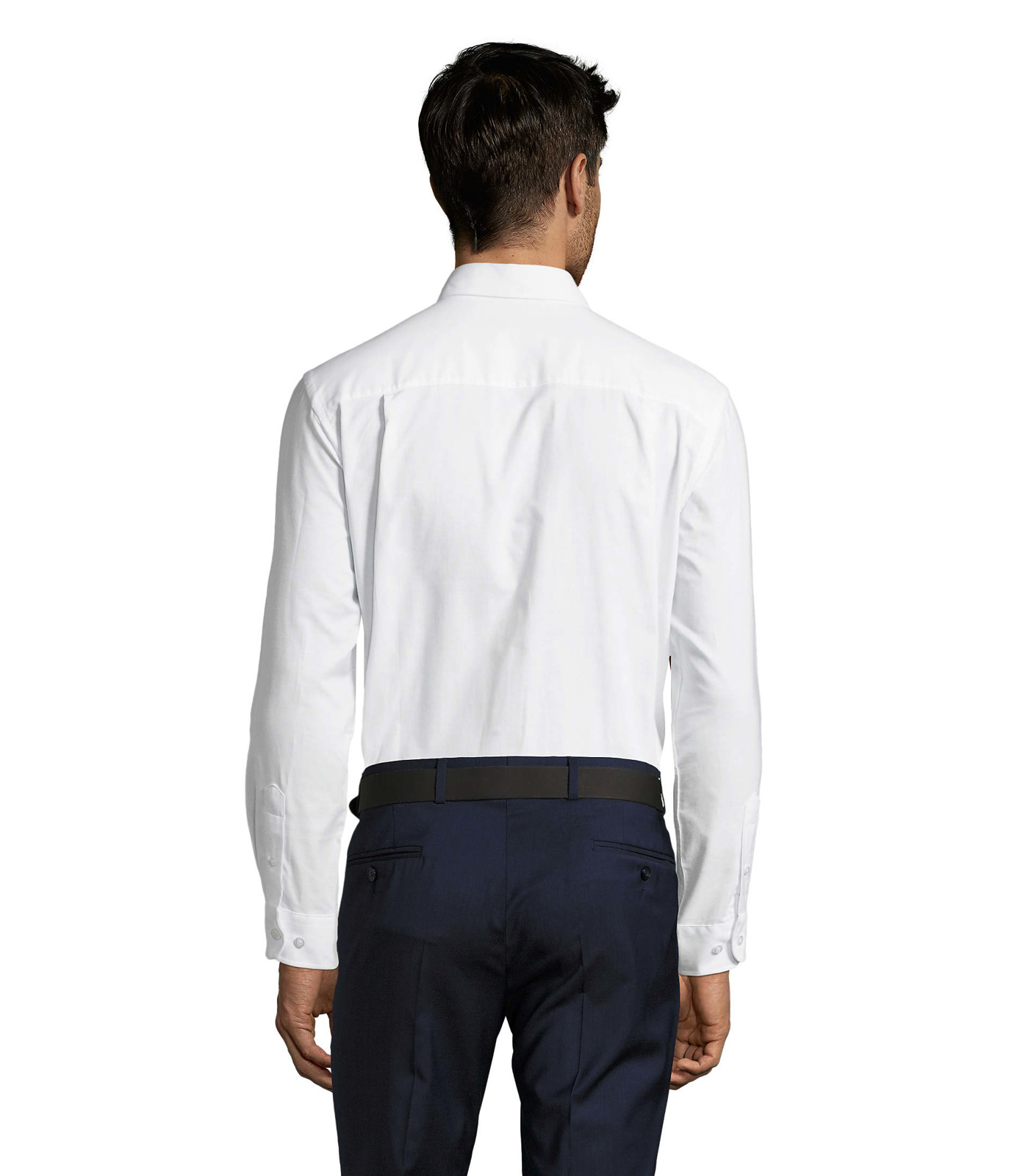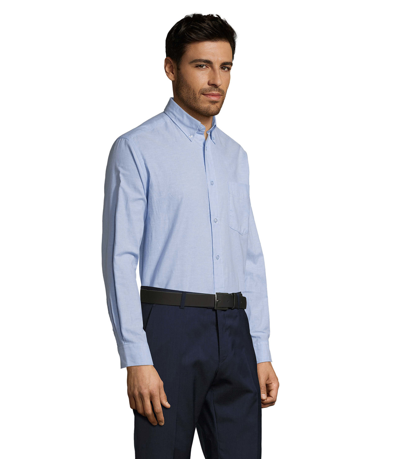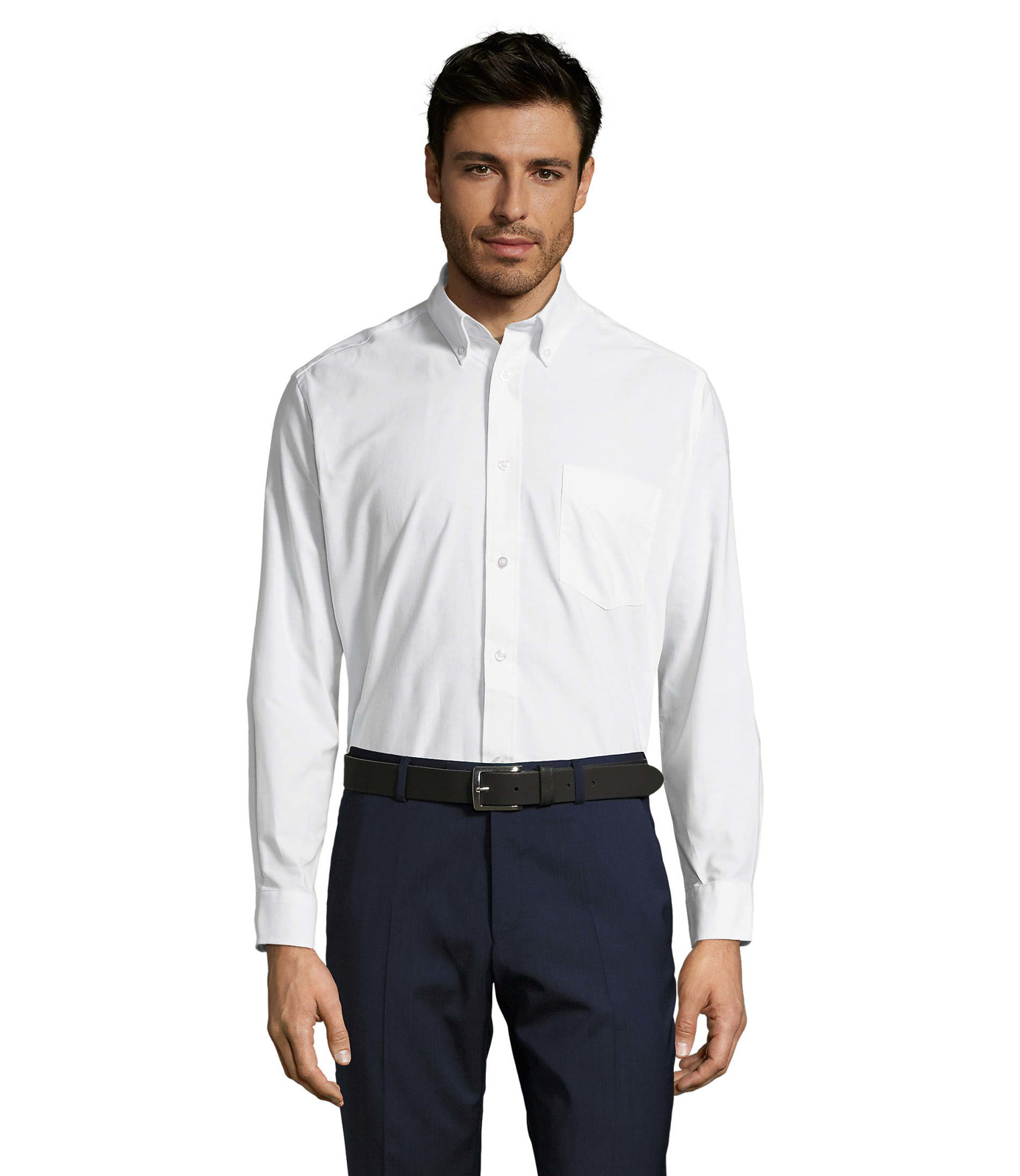 Camisa Oxford de manga comprida para homem, com corte reto e colarinho de 2 botões. Punhos reforçados ajustáveis com 2 botões. Fecho frontal com 7 botões à cor e bolso no lado esquerdo. Inclui 2 pinças nas costas para maior conforto.