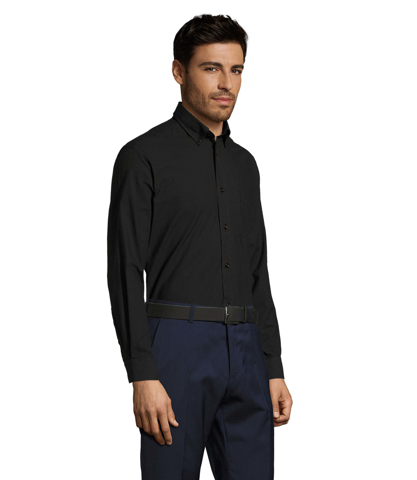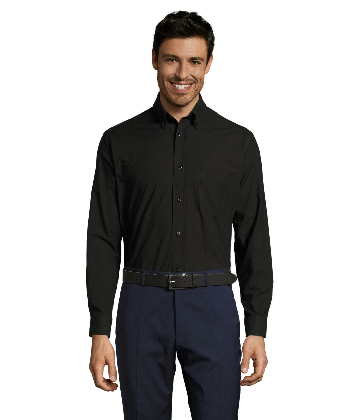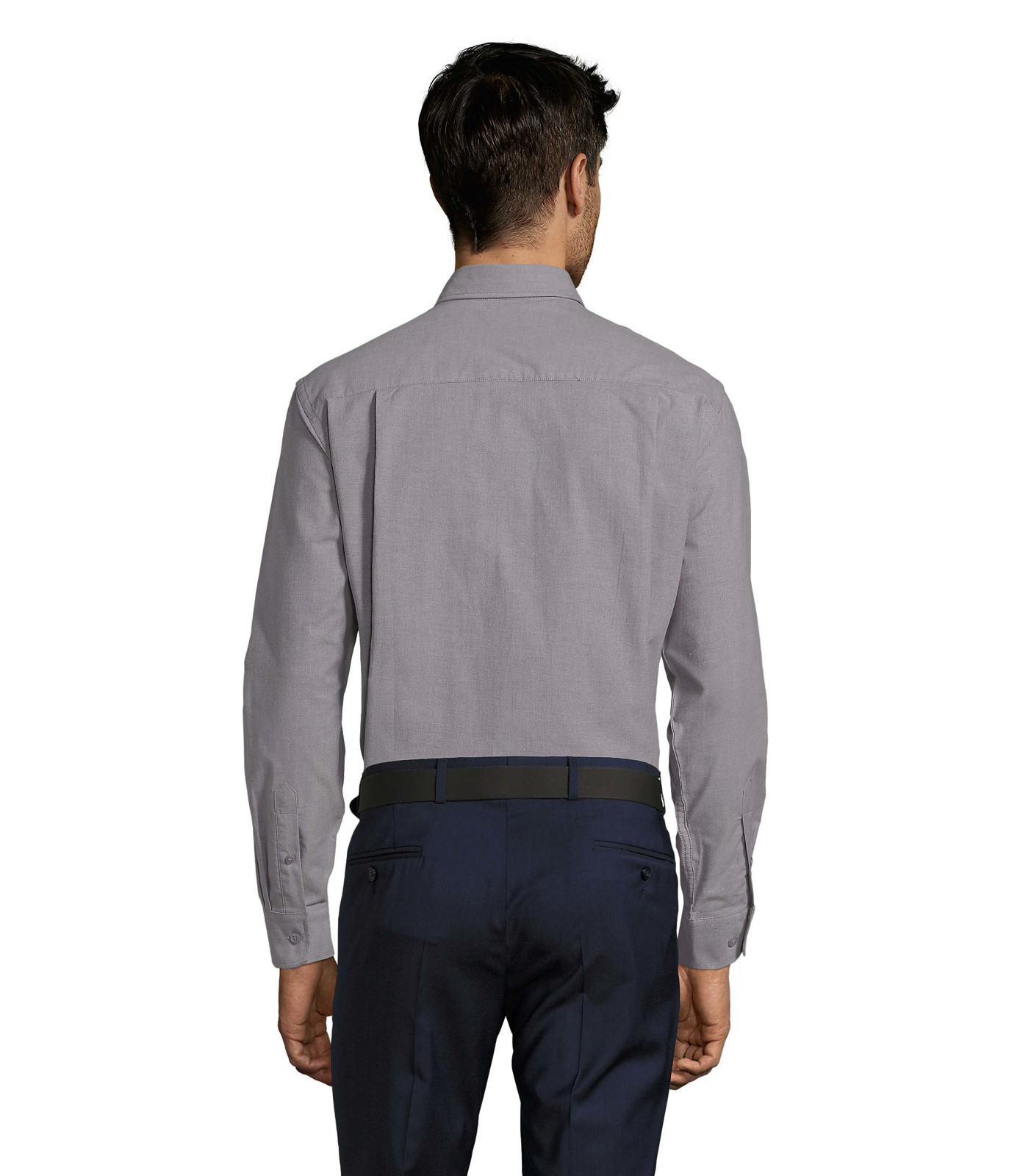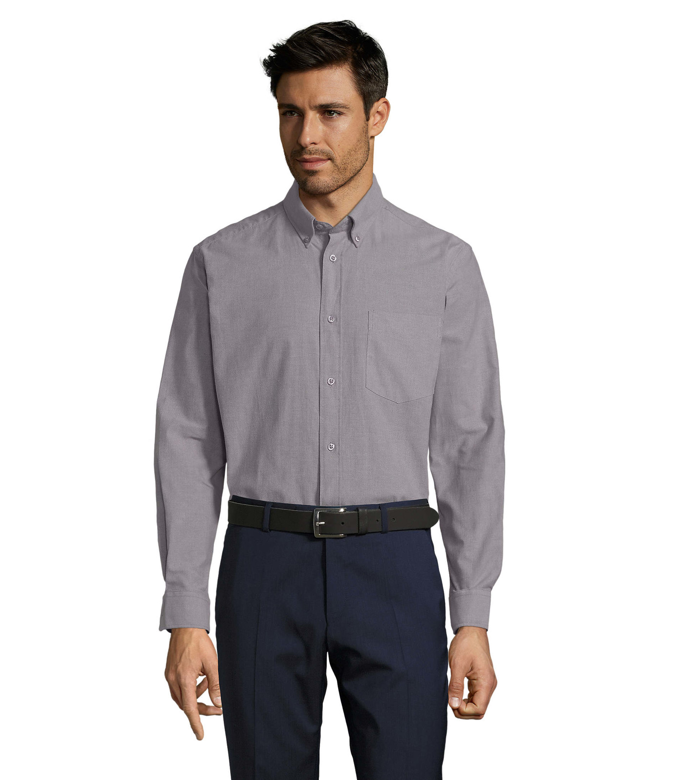 Camisa Oxford de manga comprida para homem, com corte reto e colarinho de 2 botões. Punhos reforçados ajustáveis com 2 botões. Fecho frontal com 7 botões à cor e bolso no lado esquerdo. Inclui 2 pinças nas costas para maior conforto.