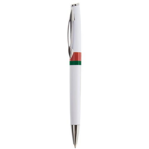 Caneta com sistema giratorio e detalhe de bandeira no corpoEscritura azulCada peça em bolsa individual.