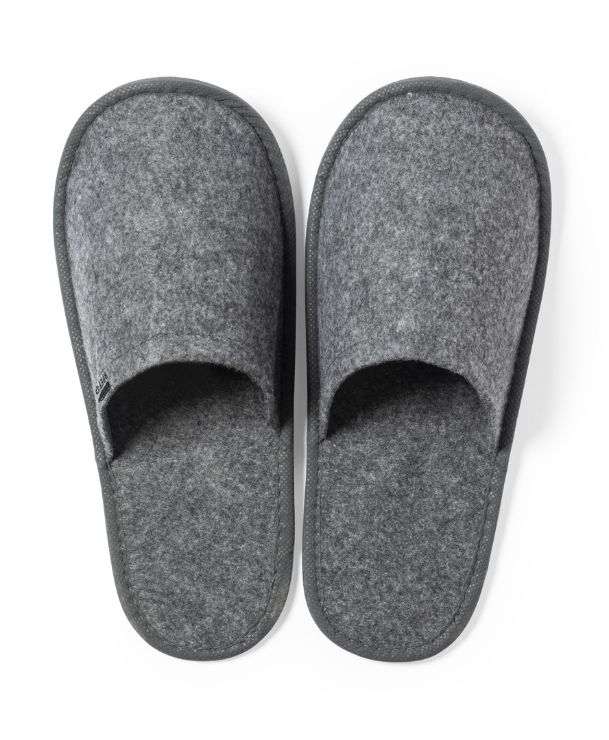 Par de chinelos unisexo. Fabricados em resistente feltro RPET, fruto da combinação do processo de reciclagem de materiais plásticos juntamente com a técnica milenária de fabricação do feltro, resultando um material de eco-tendência que, além de ser de origem reciclada, também se converte em reciclável. Interior confortável acolchoado com costuras de reforço e em tamanho único 36-43. Anti-Deslizantes. Tamanho Único 36-43