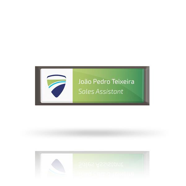 Personalize este crachá magnético antracite de forma rápida e fácil. Mantém-se em todos os tipos de tecidos com uma forte aderência sem os danificar. É perfeito para identificar o utilizador perante o público. Personalizável em 1 face com inserção de papel (64x22mm).