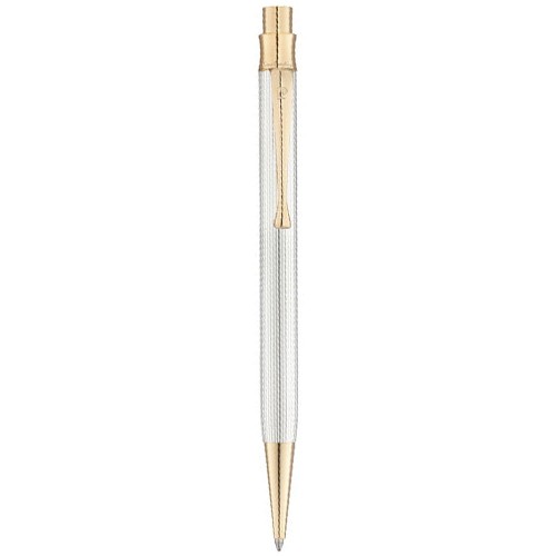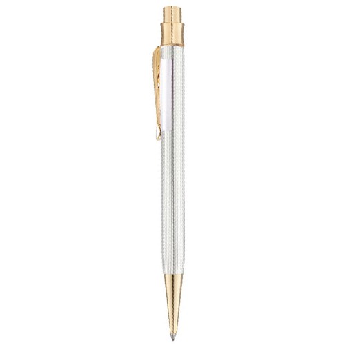 GENUS & ARGENTUM.Pierre Cardin apresenta sua mais alta linha com os modelos Genus e Argentum. Estas canetas clássicas são feitas de prata de lei sólida da mais alta qualidade, adornadas com placas de ouro de 24 quilates. Possuem um espaço para gravar o logotipo da sua empresa a laser, e são apresentadas em uma elegante e moderna caixa em tons de vermelho e preto, em combinação com a marca. Escrita em azul.