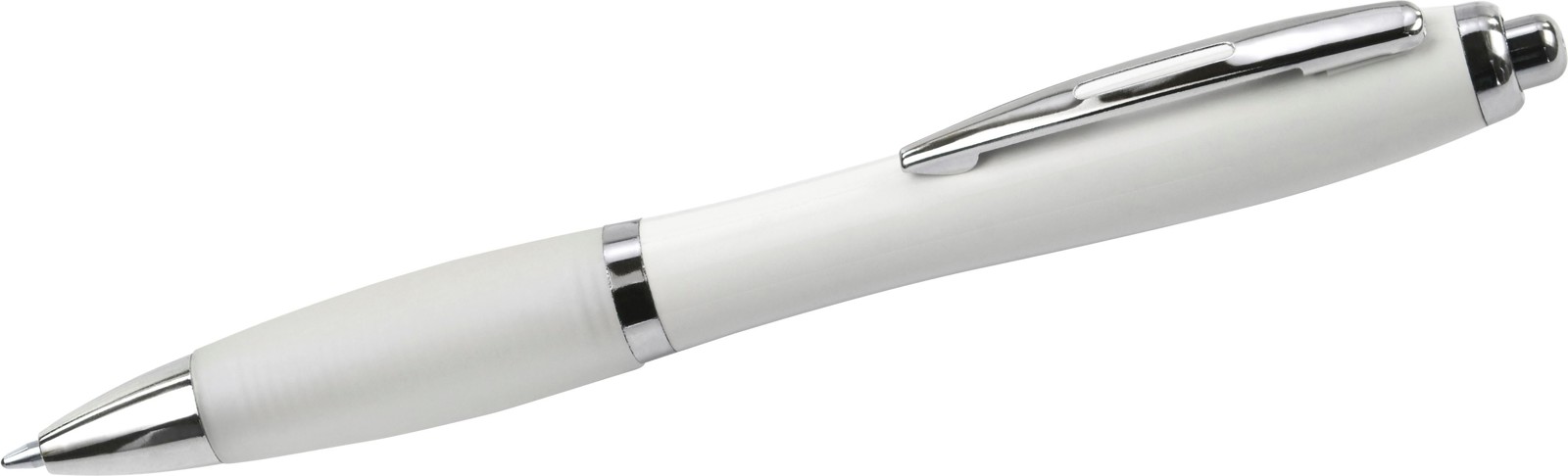 Esferográfica ABS reciclada com grip de borracha. Tinta azul.