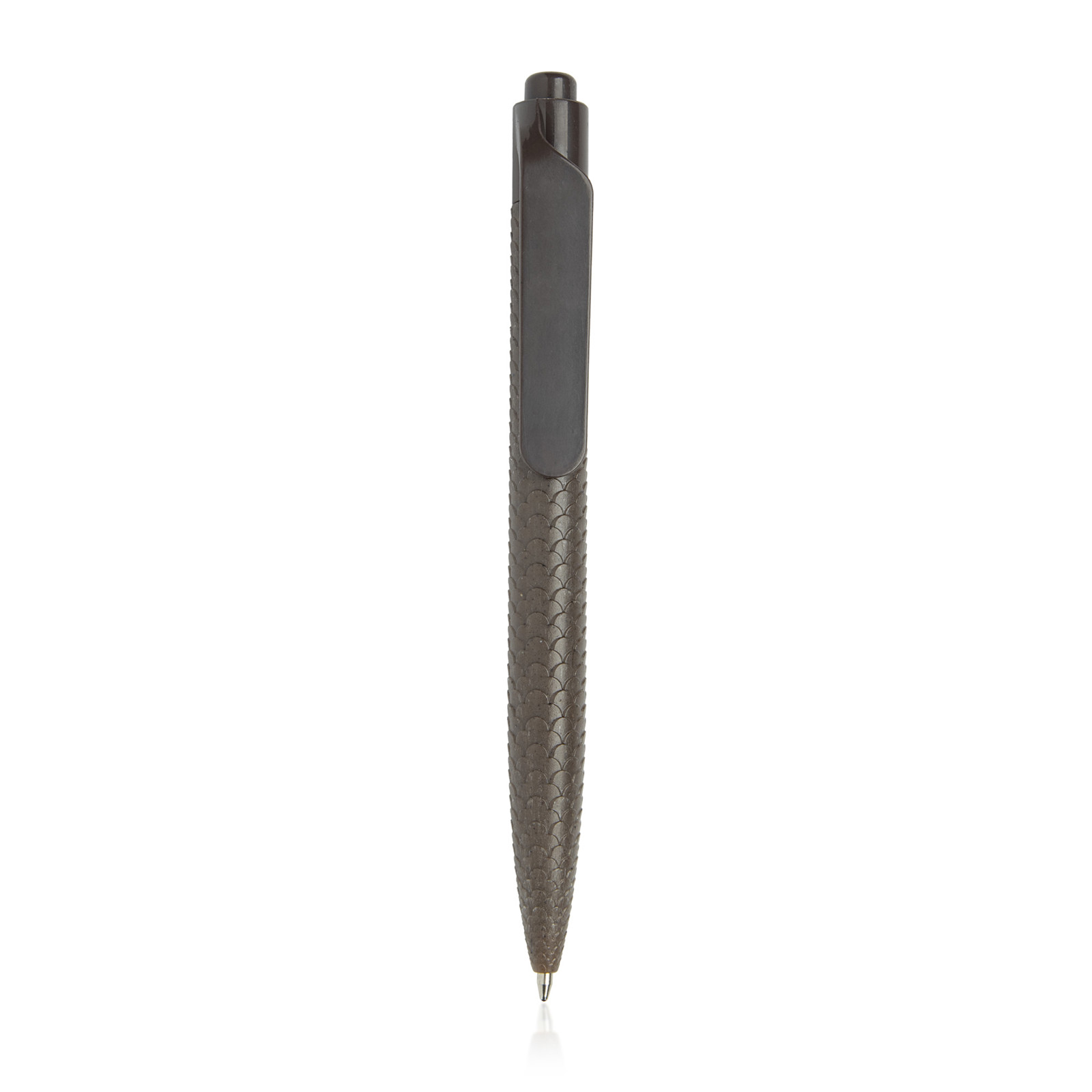 Esferográfica em ABS e fibra de café, Khaffee. O seu corpo destaca esta esferográfica de todas as outras, pelo seu relevo diferente. Sistema pulsar e escrita preta. Esta esferográfica é um brinde único, com um ótimo clip personalizável. Material eco-friendly.