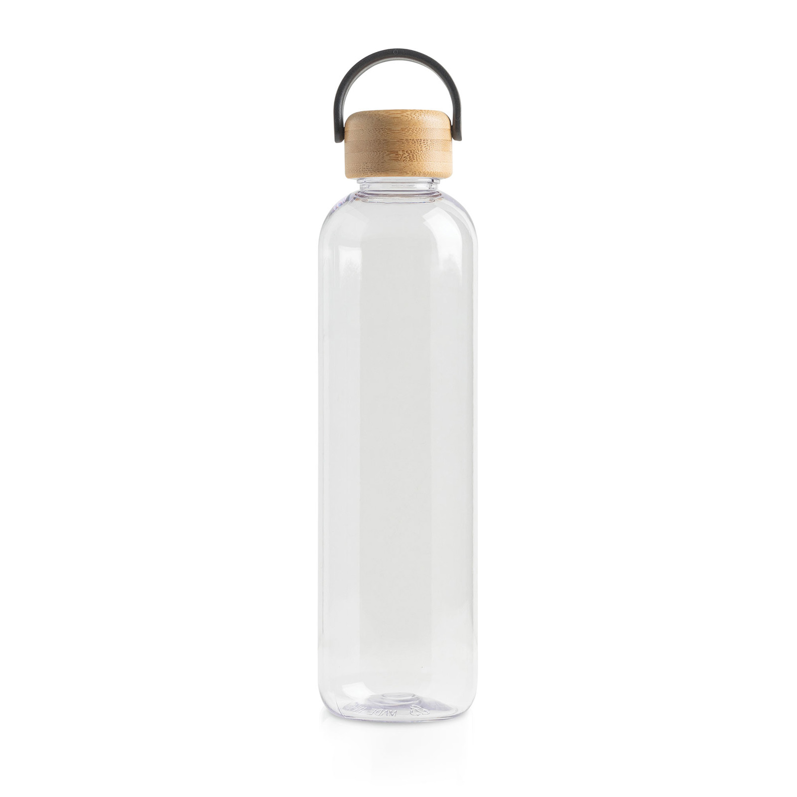 Garrafa em tritan, tampa em bambu, 1000ml. As garrafas de plástico não reutilizáveis estão cada vez mais démodé. A pensar nisso, e no meio ambiente, surge esta garrafa de tritan que pode usar quantas vezes quiser. Com tampa em bambu e alça móvel de plástico rígido.