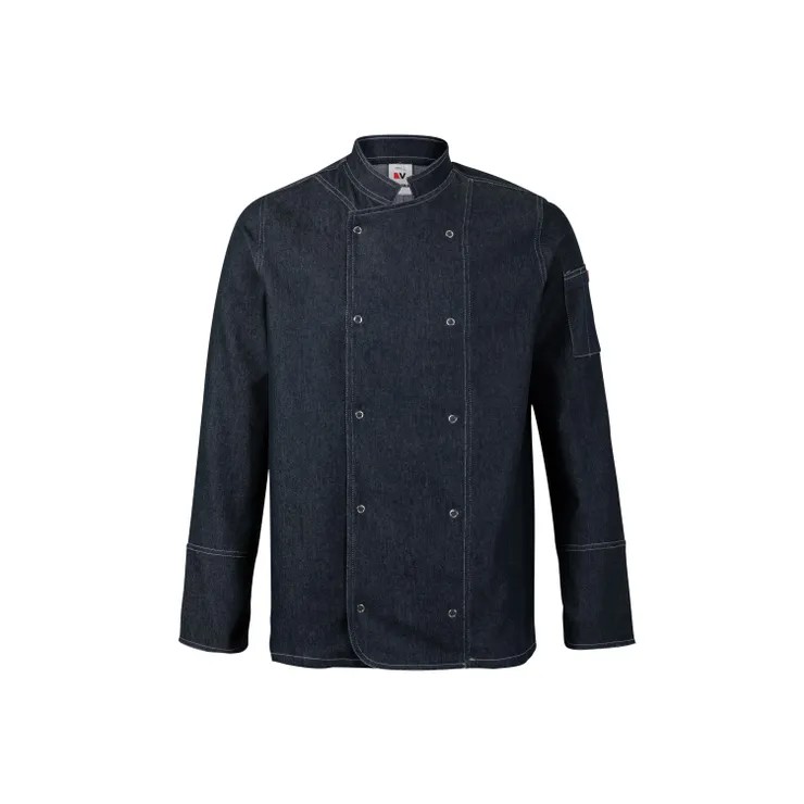 Fecho central de abotoadura dupla, com botões automáticos de arandela Gola mao Manga alfaiate com abertura nos punhos Sem costura lateral Costura central nas costas Tecido Stretch 1 bolso de remendo na manga esquerda, com duas divisões