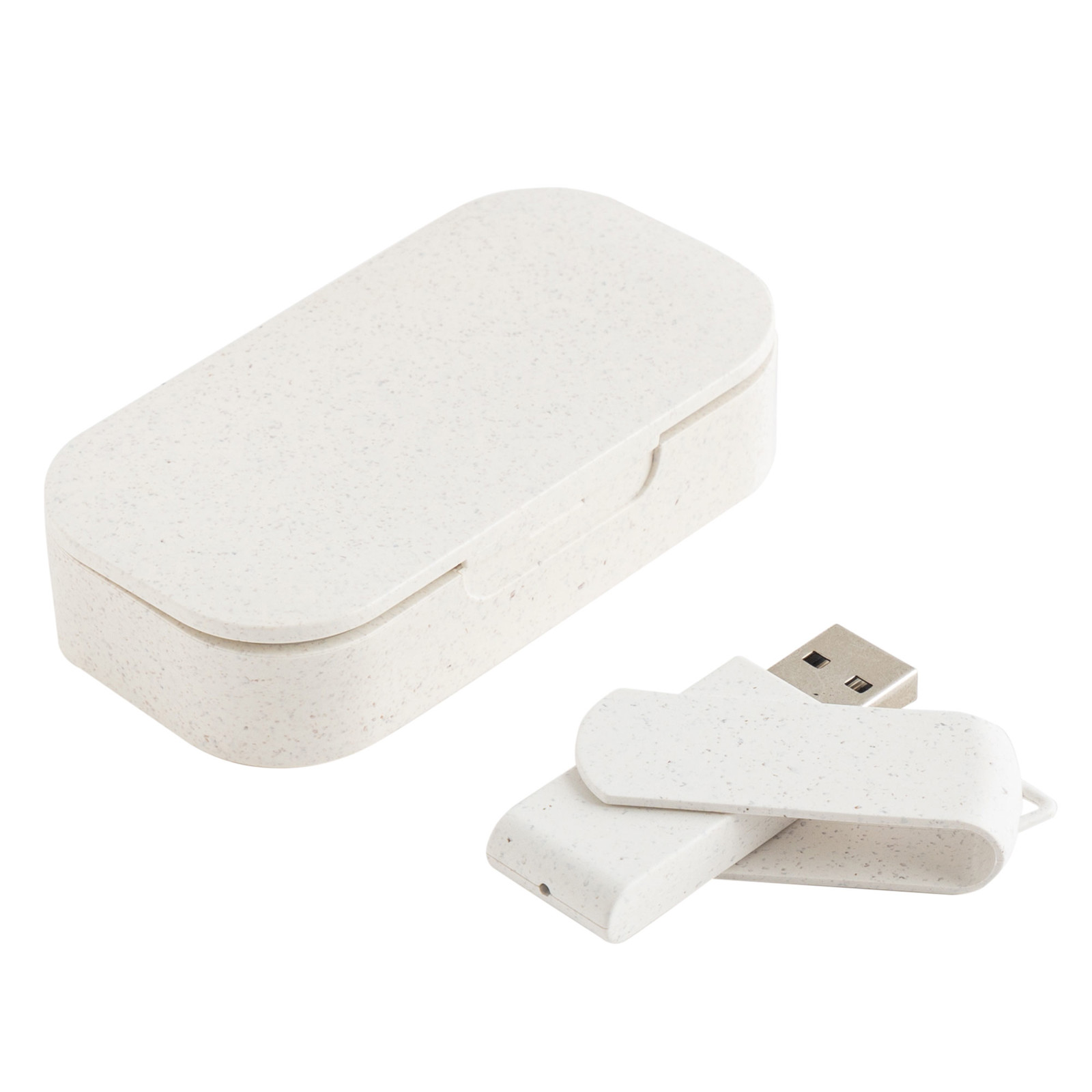 Memória USB de 32GB com caixa em fibra de trigo. Não perca de vista a informação. Traga consigo esta memória USB personalizável. Em materiais eco-friendly e com uma caixa oferta ideal para colocar a sua marca.