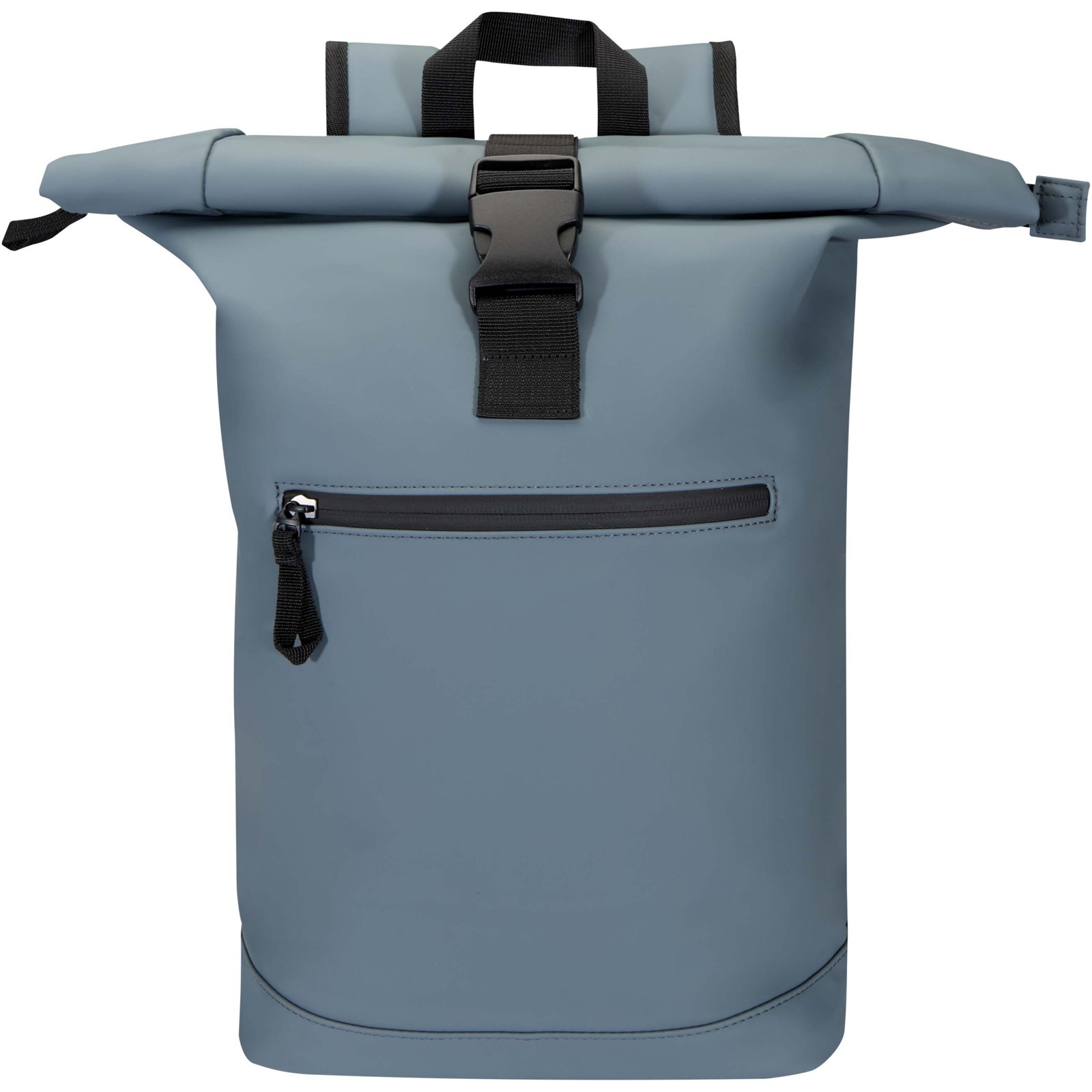 Feita de couro PU reciclado premium com forro RPET da mesma cor, esta mochila de enrolar combina o estilo moderno com uma durabilidade prolongada. O seu acabamento resistente à água mantém os seus artigos essenciais protegidos, enquanto que o fecho de enrolar oferece um armazenamento flexível, perfeito para deslocamentos, viagens ou ginásio. No seu interior, um compartimento acolchoado acomoda computadores portáteis até 15,6 polegadas, com um bolso adicional com fecho de correr para manter os seus dispositivos tecnológicos e artigos essenciais do dia a dia organizados. No seu exterior, um bolso frontal com fecho de correr com um fecho à prova de água oferece um acesso seguro, enquanto que as alças de ombro acolchoadas e ajustáveis e um painel traseiro respirável garantem conforto durante o dia todo.