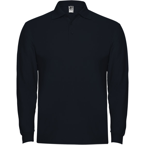 Polo de manga comprida com gola e punhos canelados, carcela de três botões e punhos canelados em elastano 1x1. Tapa costuras reforçada na gola. Bolso opcional. Etiqueta amovível. O modelo tem 190 cm e está a usar o tamanho L.