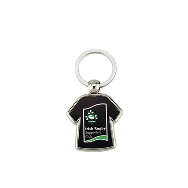 Um porta-chaves de t-shirt em metal, perfeito para clubes desportivos, associações, ginásios ou escolas.Este porta-chaves será um presente excelente para recompensar a fidelidade dos clientes de uma empresa.Personalizado com inserção de papel em 2 faces e tampa em acrílico.