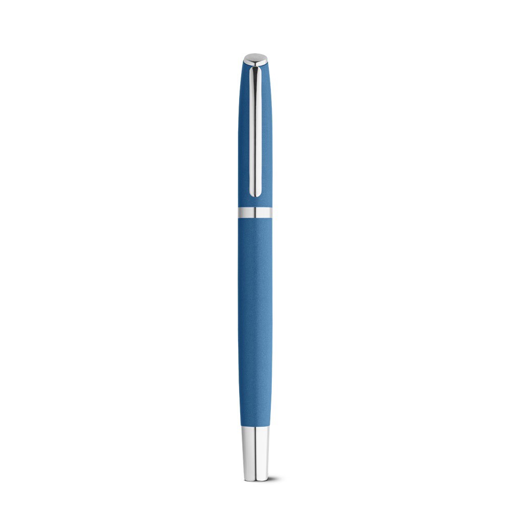 Conjunto de roller e esferográfica com corpo de alumínio reciclado (100% rAL), clipe e ponteiras em metal. Os sets são compostos pela mesma cor e a esferográfica tem mecanismo twist. Escrita em azul. Fornecido em caixa de oferta em papel 100% reciclado. Roller: ø11 x 140 mm | Esferográfica: ø11 x 140 mm | Caixa: 178 x 46 x 29 mm