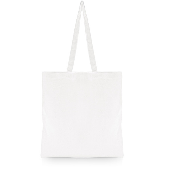 Saco de asa comprida em algodão reciclado 140g. Este saco está disponível em 5 cores sólidas e é uma oferta acertada por ser ecológico, reutilizável e bastante útil quer seja nas compras, quer no dia a dia. Opte por sacos amigos do ambiente.
