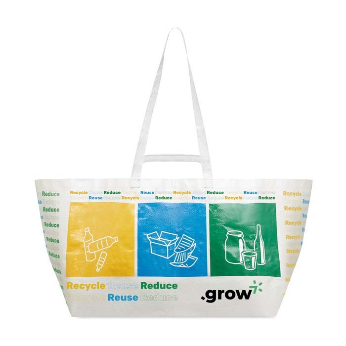 Prazo de entrega a partir de 6 semanas. Saco de compras horizontal fabricado em tecido PP laminado de 140 g/m². Inclui pegas longas e curtas. Dimensões do saco: 90x38x35cm; tamanho da base: 35x55cm. Pegas: 30+70cm, largura: 2,5cm. Pegas Escolha entre o tecido próprio ou a construção em tecido PP mais resistente. Selecione uma das cores padrão ou forneça o PMS pretendido e nós faremos a correspondência com a cor mais próxima disponível.