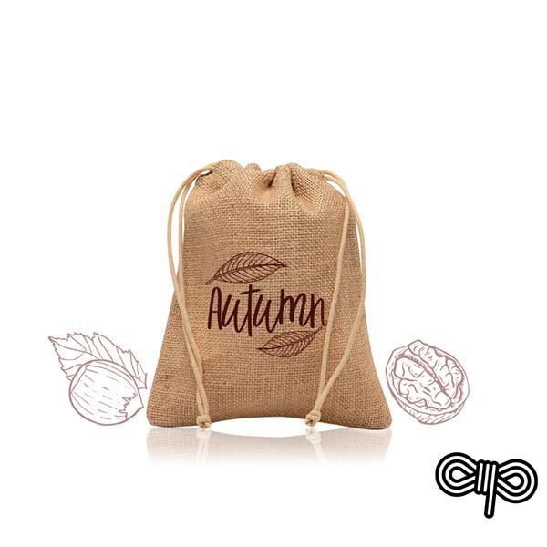 Saco pequeno em juta, com atilhos. Perfeito para oferecer um presente. Associa-se facilmente a produtos naturais e/ou artesanais. Se sempre procurou um saco com a junção do requinte e do artesanal, aproveite este brinde e personalize-o.