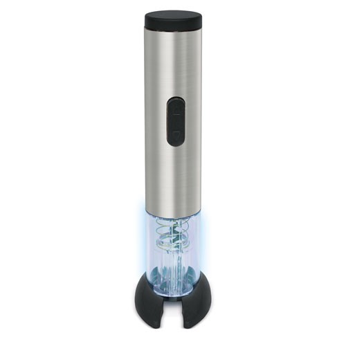 Saca-rolhas electricoSe ilumina com o funcionamentoDescapsuladorPilhas nao incluidasCom um desenho moderno e estilizado realizado em inoxidável, este comodosaca-rolhas electrico, lhe ajudará a abrir as suas garrafas de vinho rapidamente pulsando apenas um botao. Inclui um suporte descapsulador