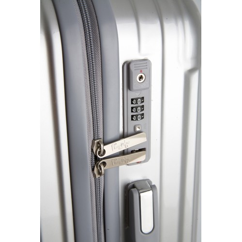 Lujoso set de 3 trolleys de 20", 40" e 60" em acabado metalizado com desenhonervurado. Perfeito para qualquer tipo de viagem.Com fechos de segurança TSA, duplo tirador, alça central de trolley e alçalateral para mao.Sistema de 4 ro
