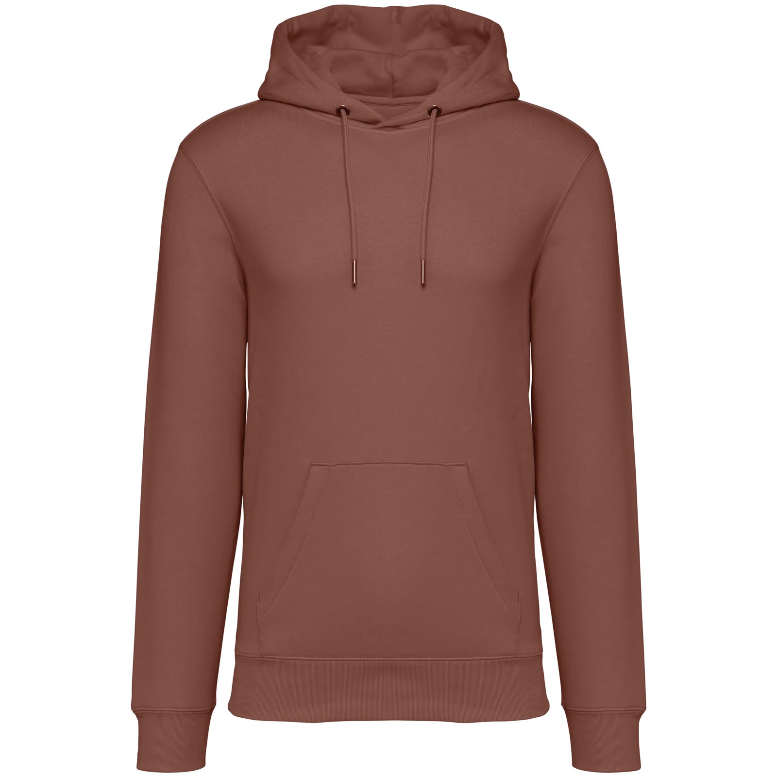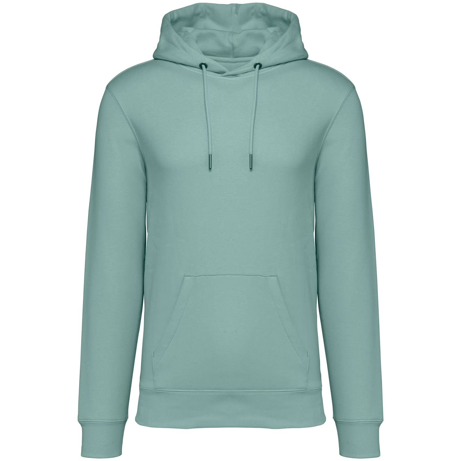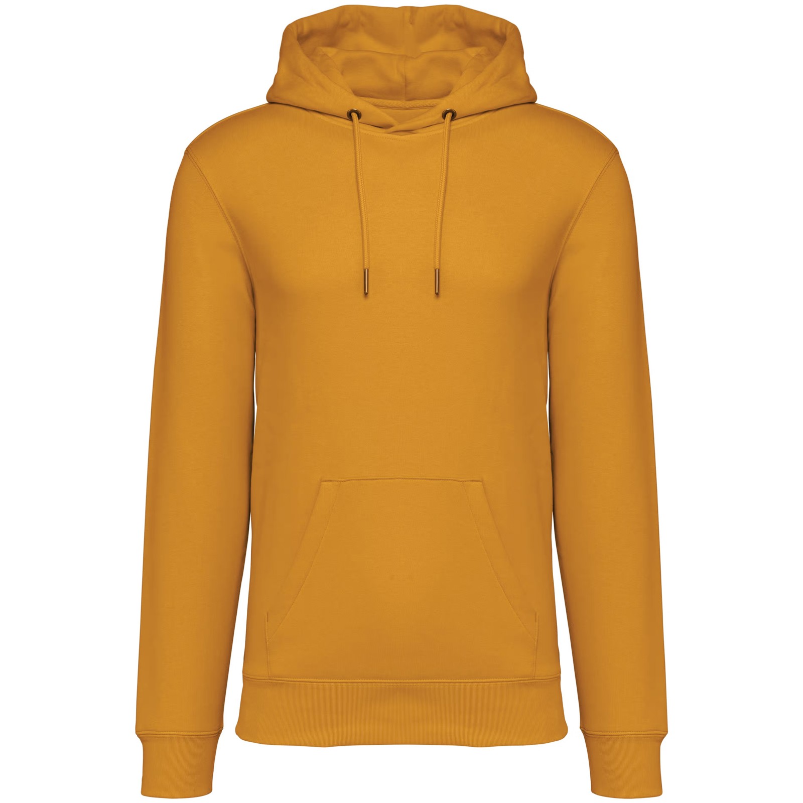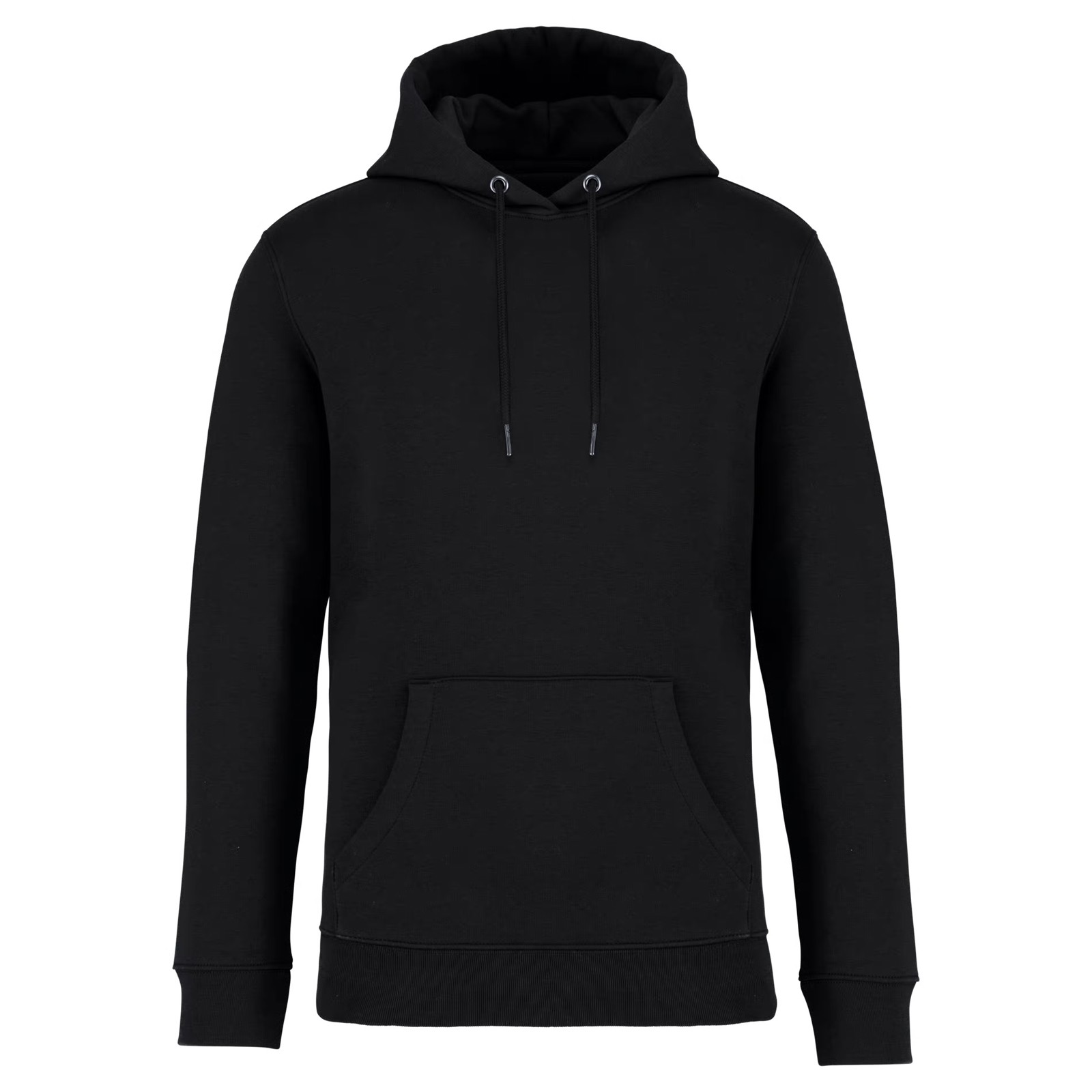 85% algodão biológico / 15% poliéster reciclado pós-consumo. Algodão penteado ringspun. Corte justo. Banho de enzimas. Interior cardado 3 fios LSF (Low Shrinkage Fleece: cardado pré-encolhido). Meia-lua nas costas. Bolso à canguru. Malha rib 1 x 1 no decote, no cós e nos punhos. Pesponto duplo no decote, nas cavas, no cós e na meia-lua. Tapa-costuras no interior do decote nas costas. Capuz forrado no material principal com ponto de reforço no cordão. Cordão redondo com extremidades e ilhós em metal reciclado. A cor Raw Natural distingue-se pelo seu aspecto bruto visualmente texturado, salpicada de partículas finas visíveis a olho nu.